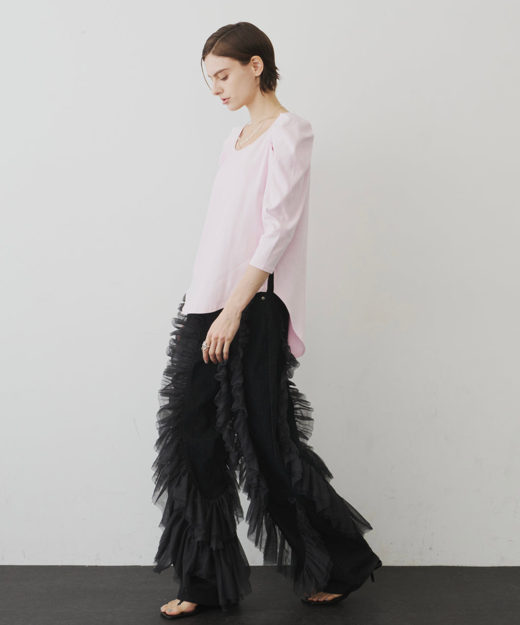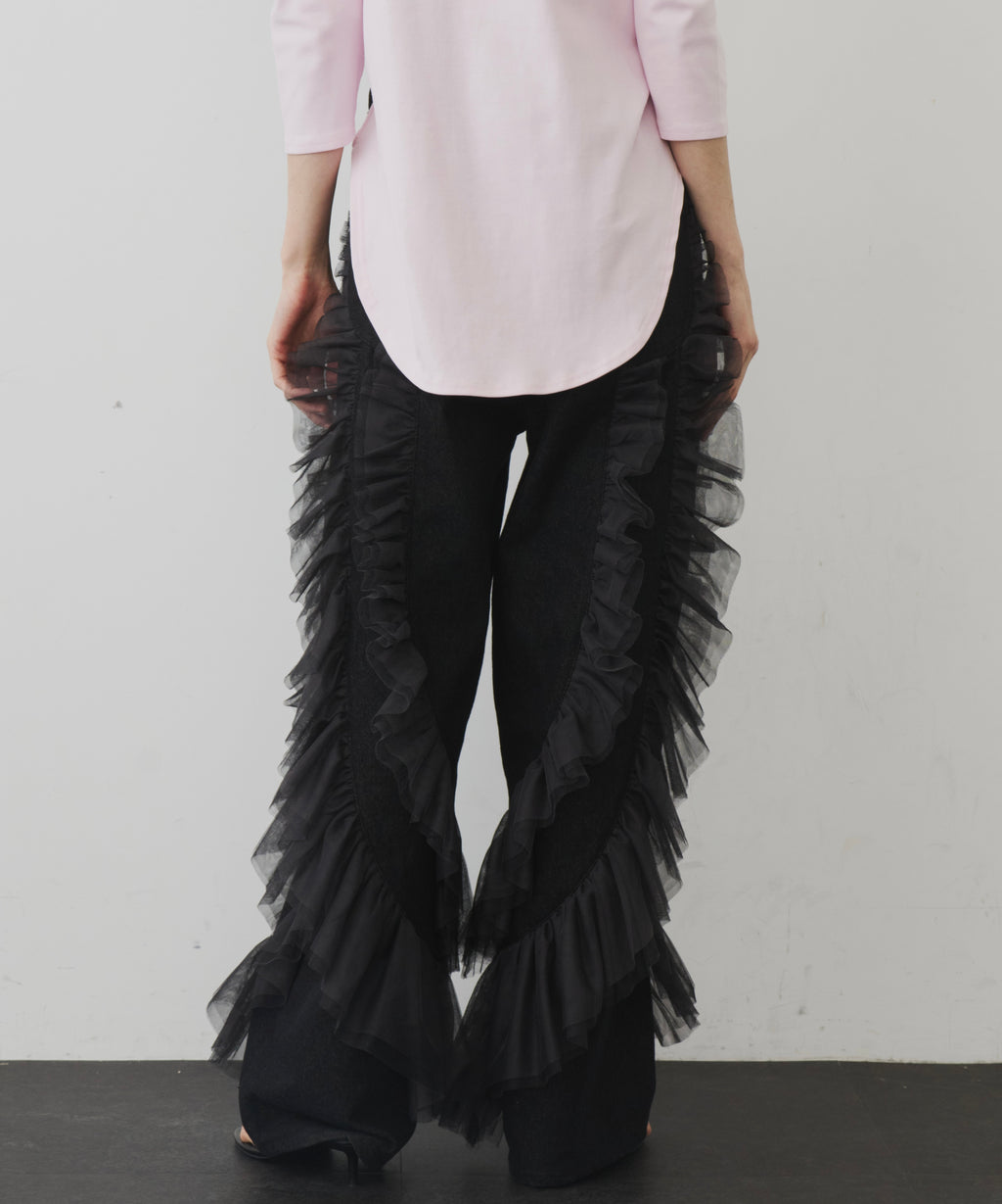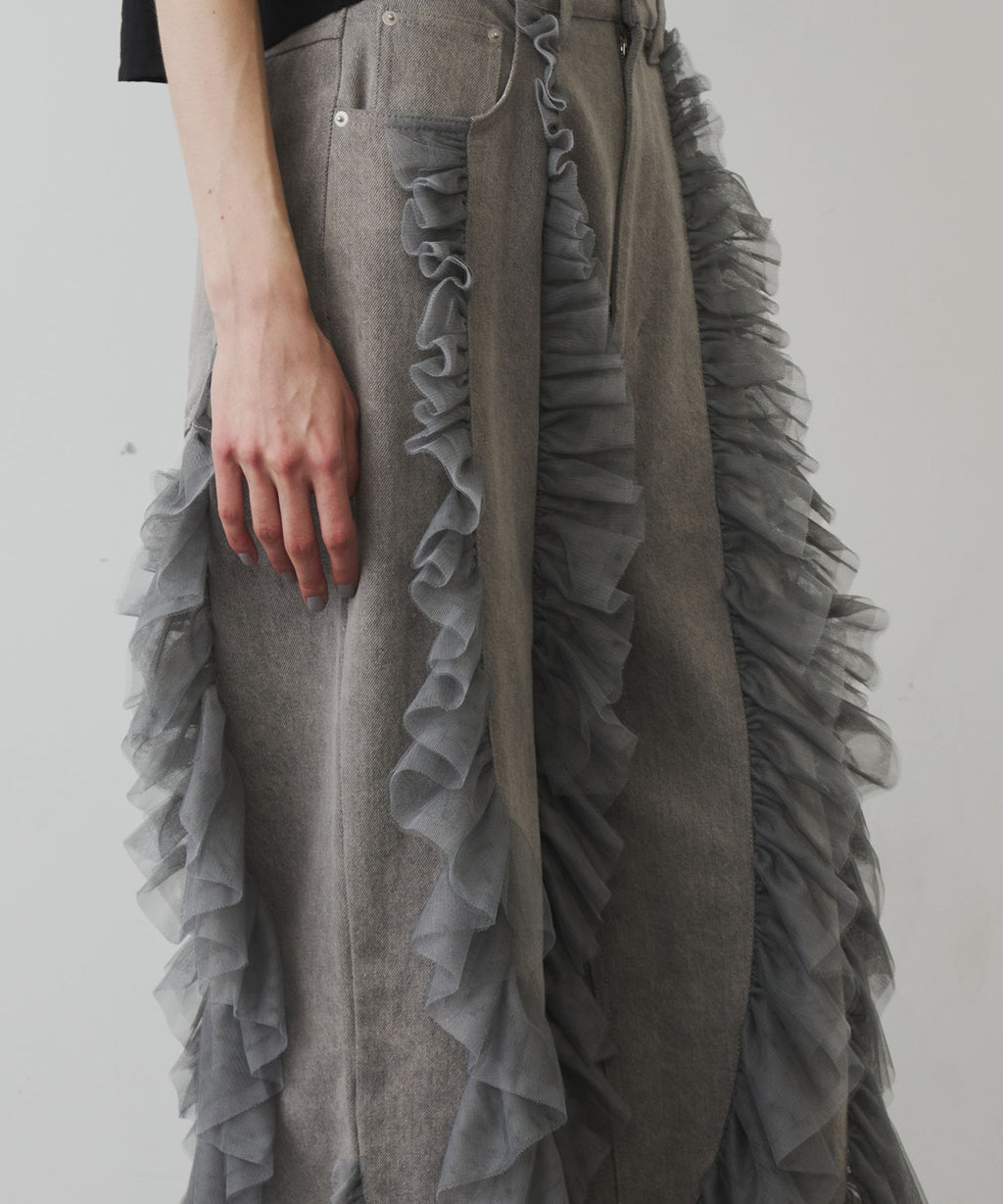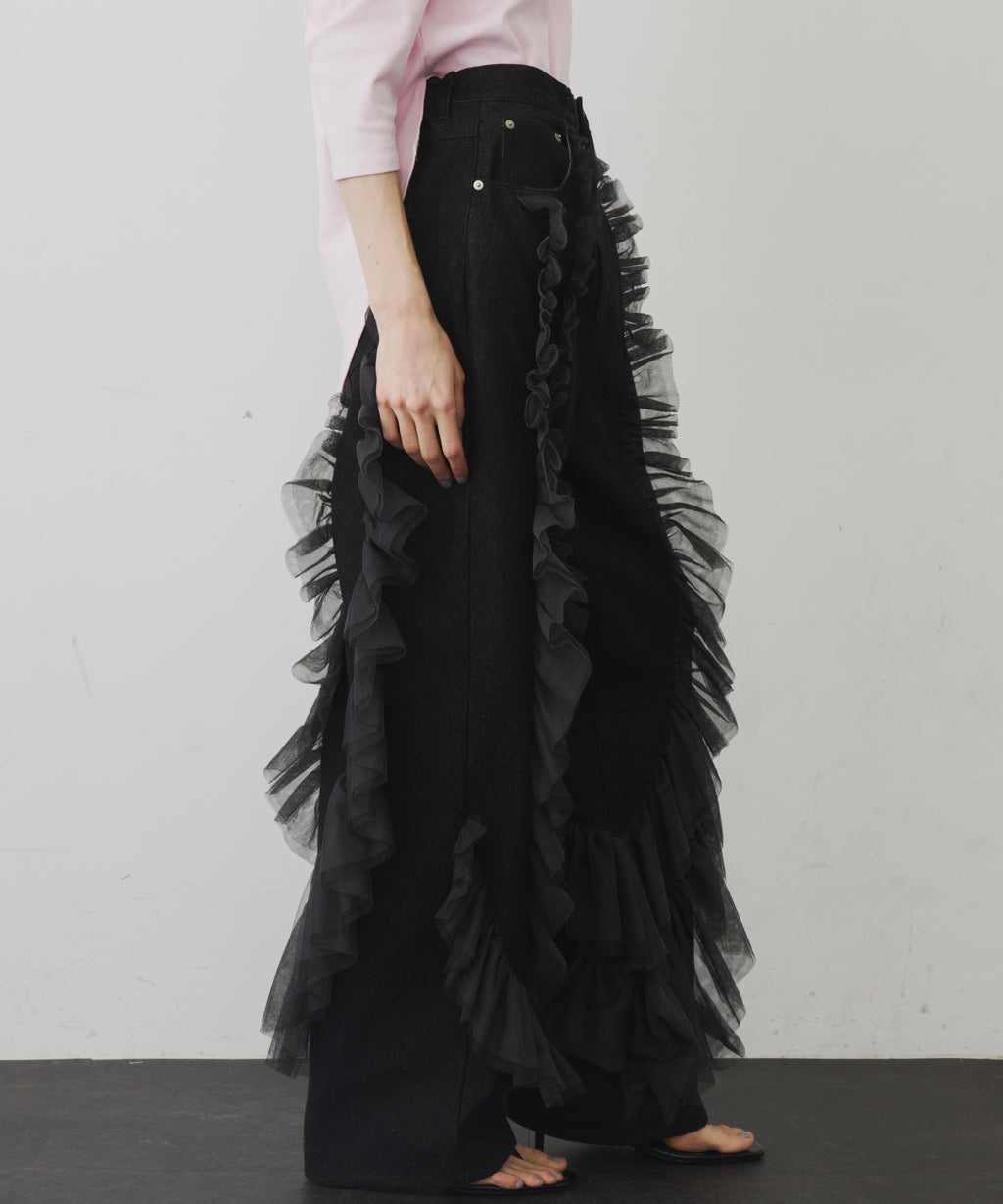 ギャザーをたっぷり寄せたチュールをデニムにドッキング。