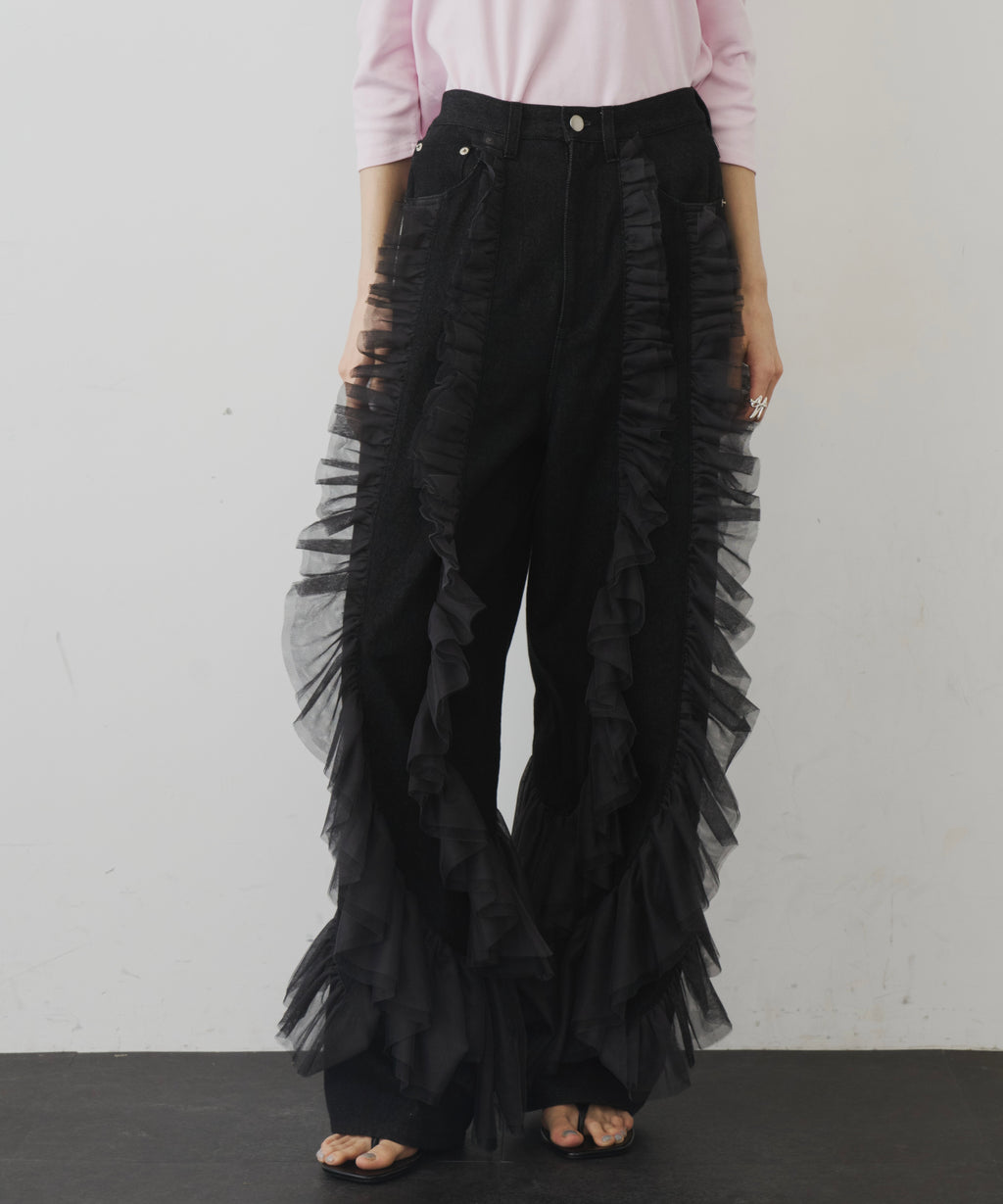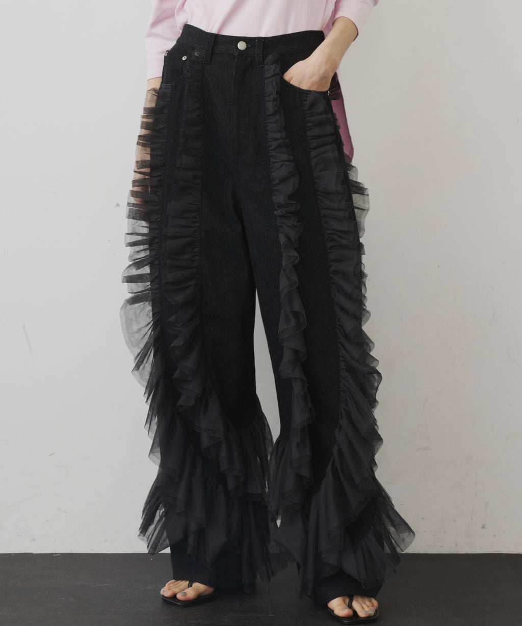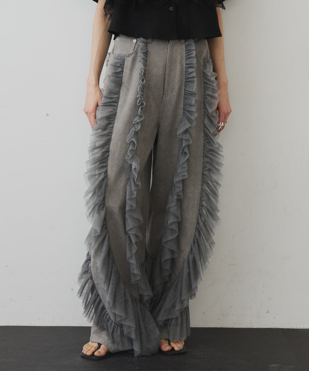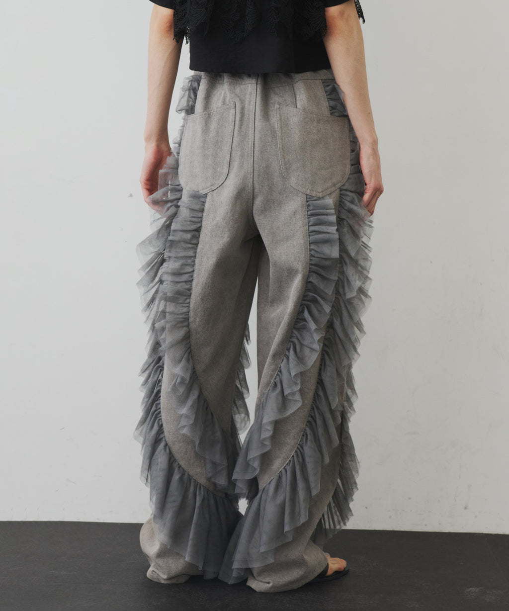 ギャザーをたっぷり寄せたチュールをデニムにドッキング。