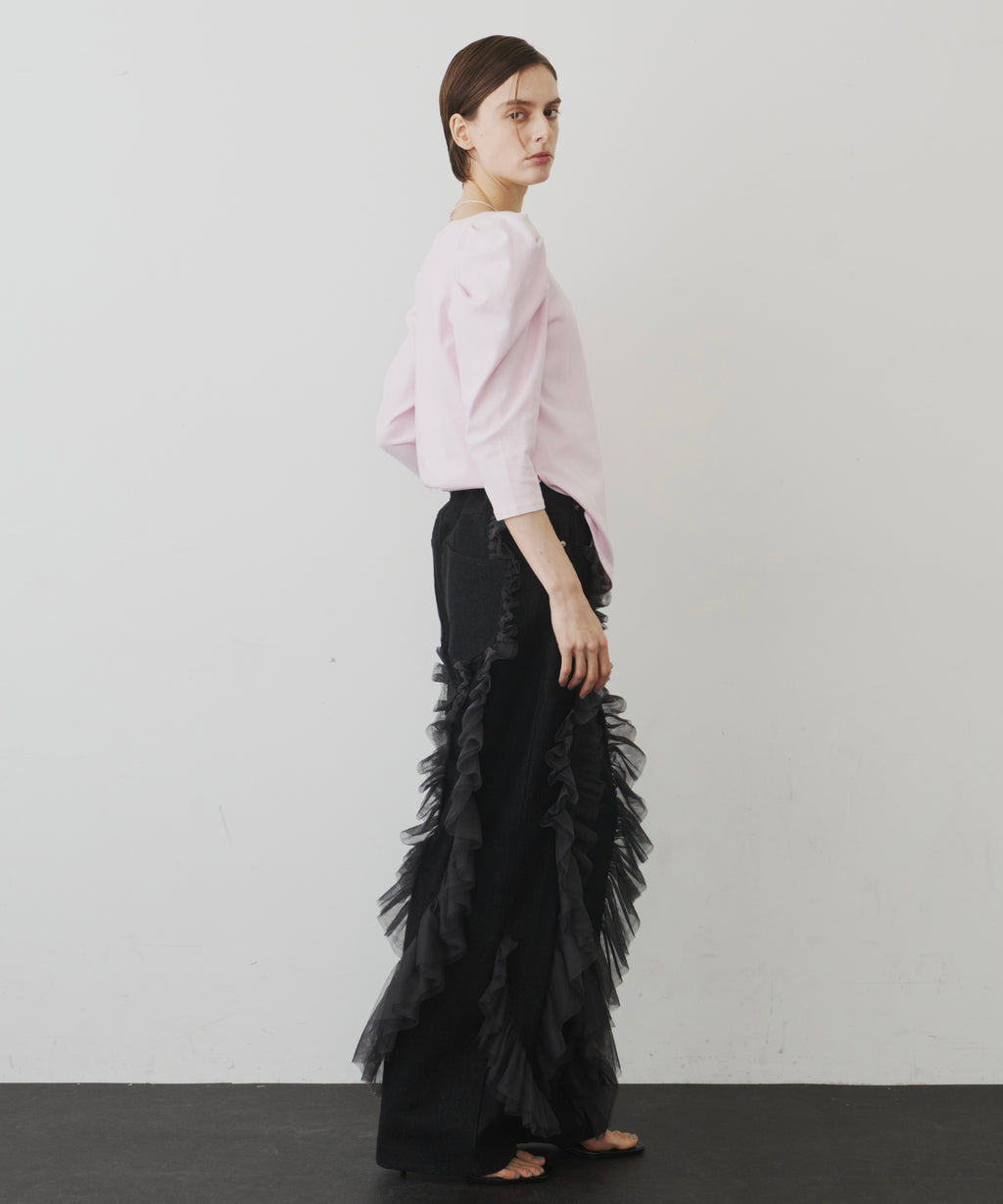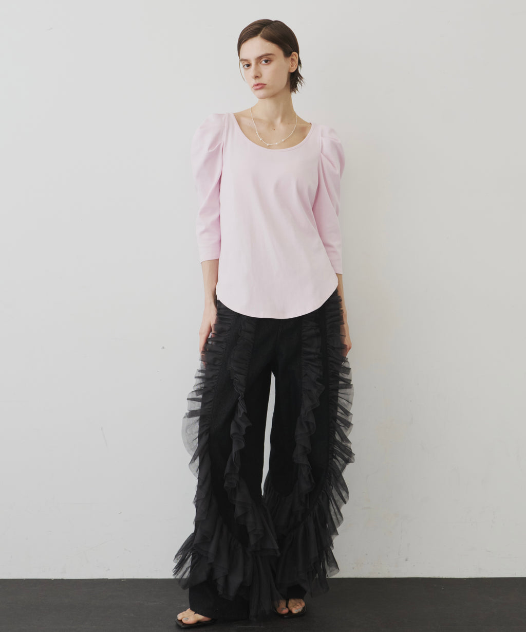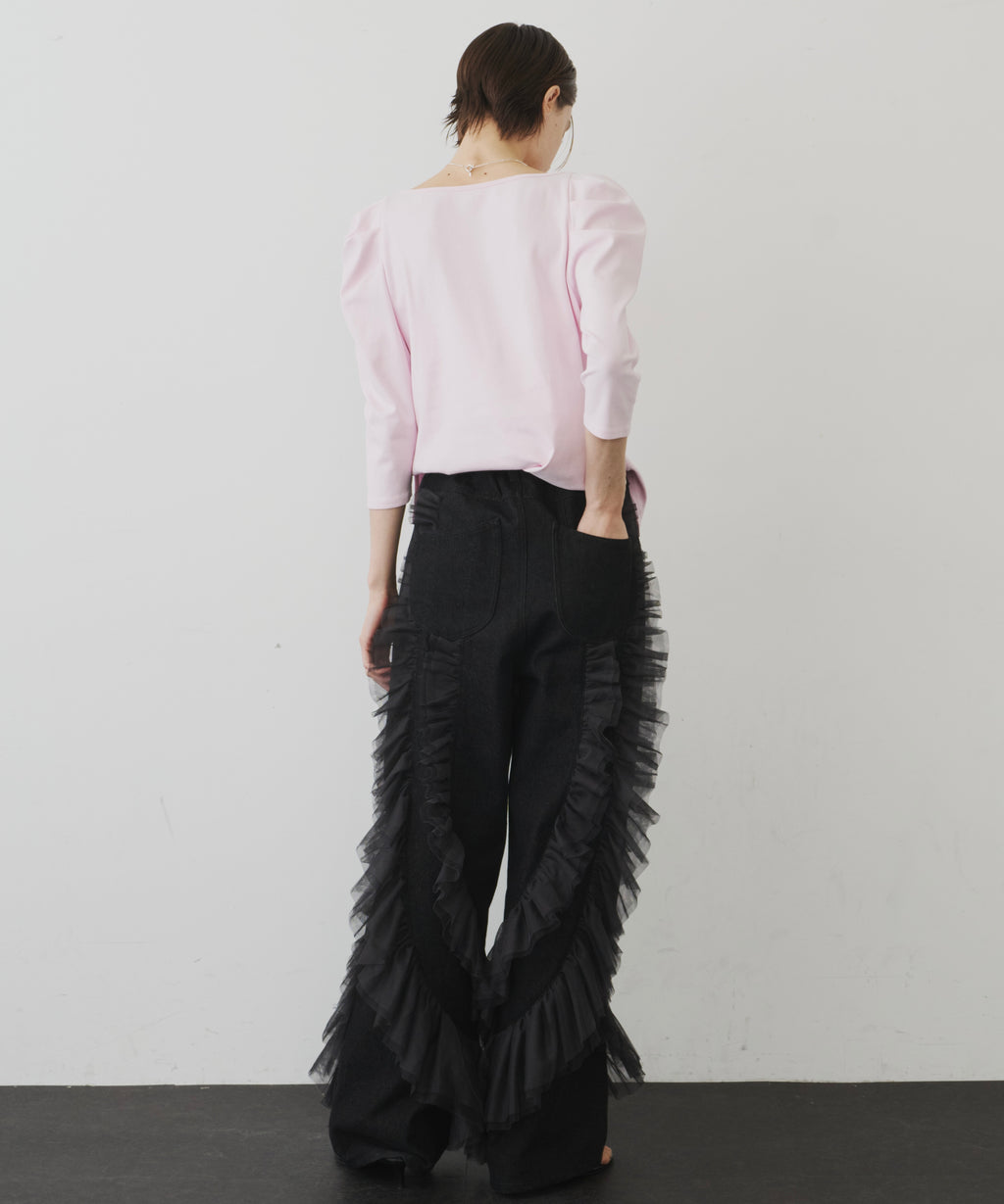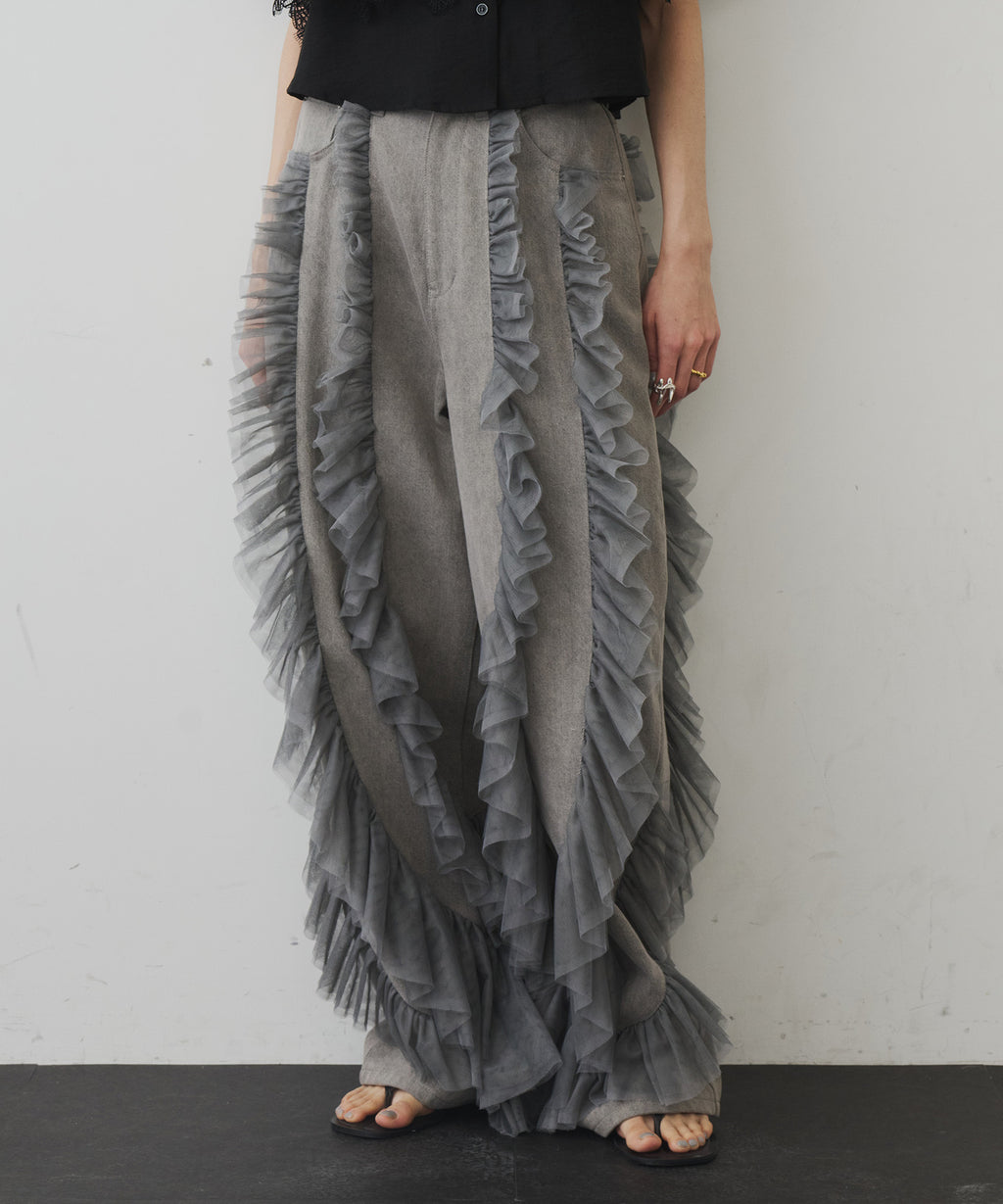 ギャザーをたっぷり寄せたチュールをデニムにドッキング。