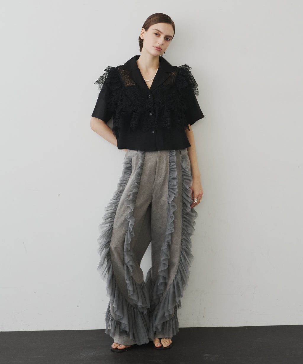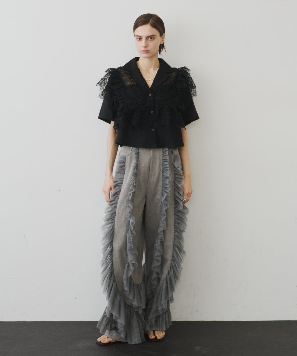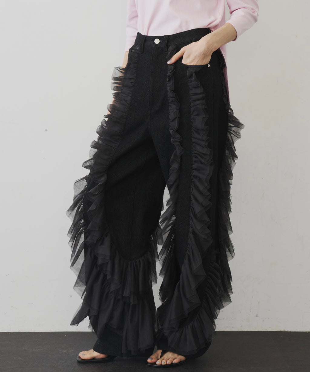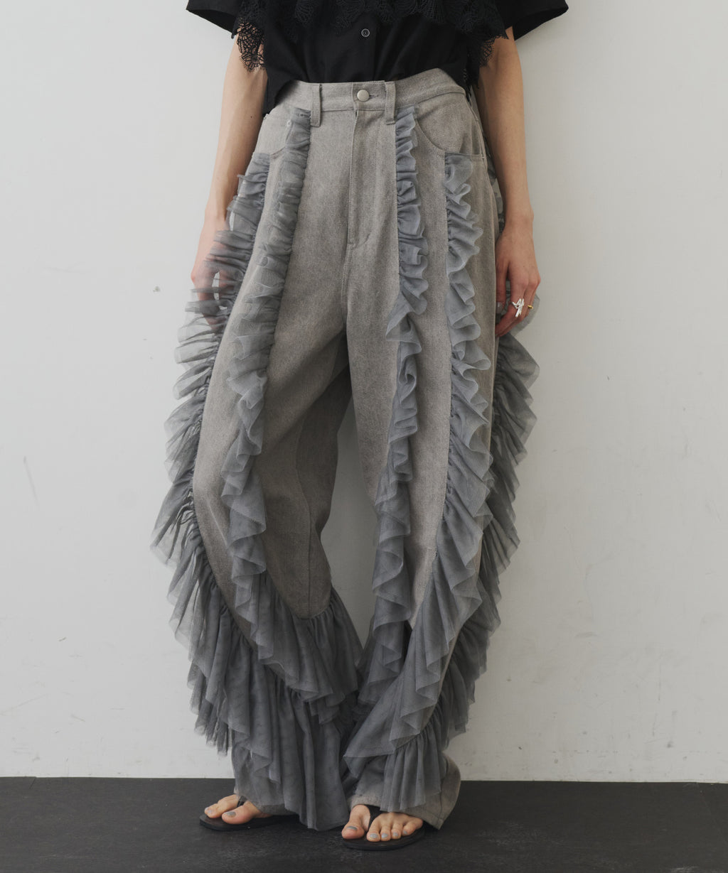 ギャザーをたっぷり寄せたチュールをデニムにドッキング。