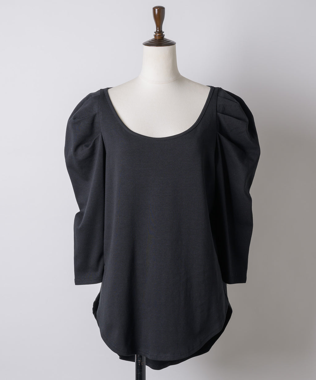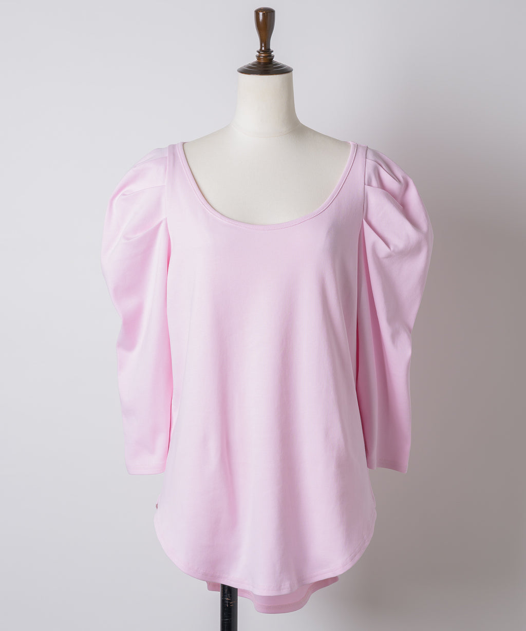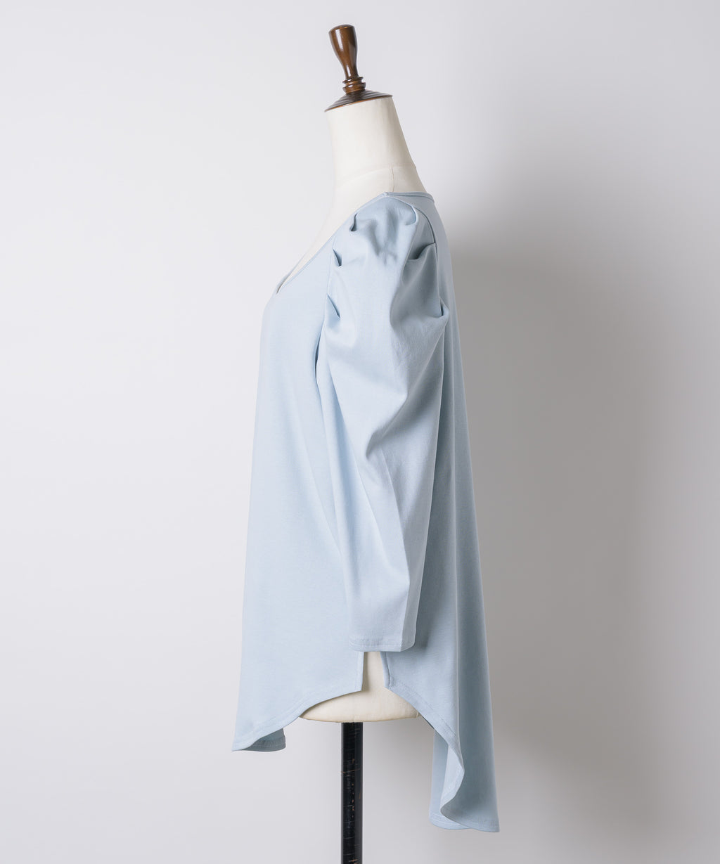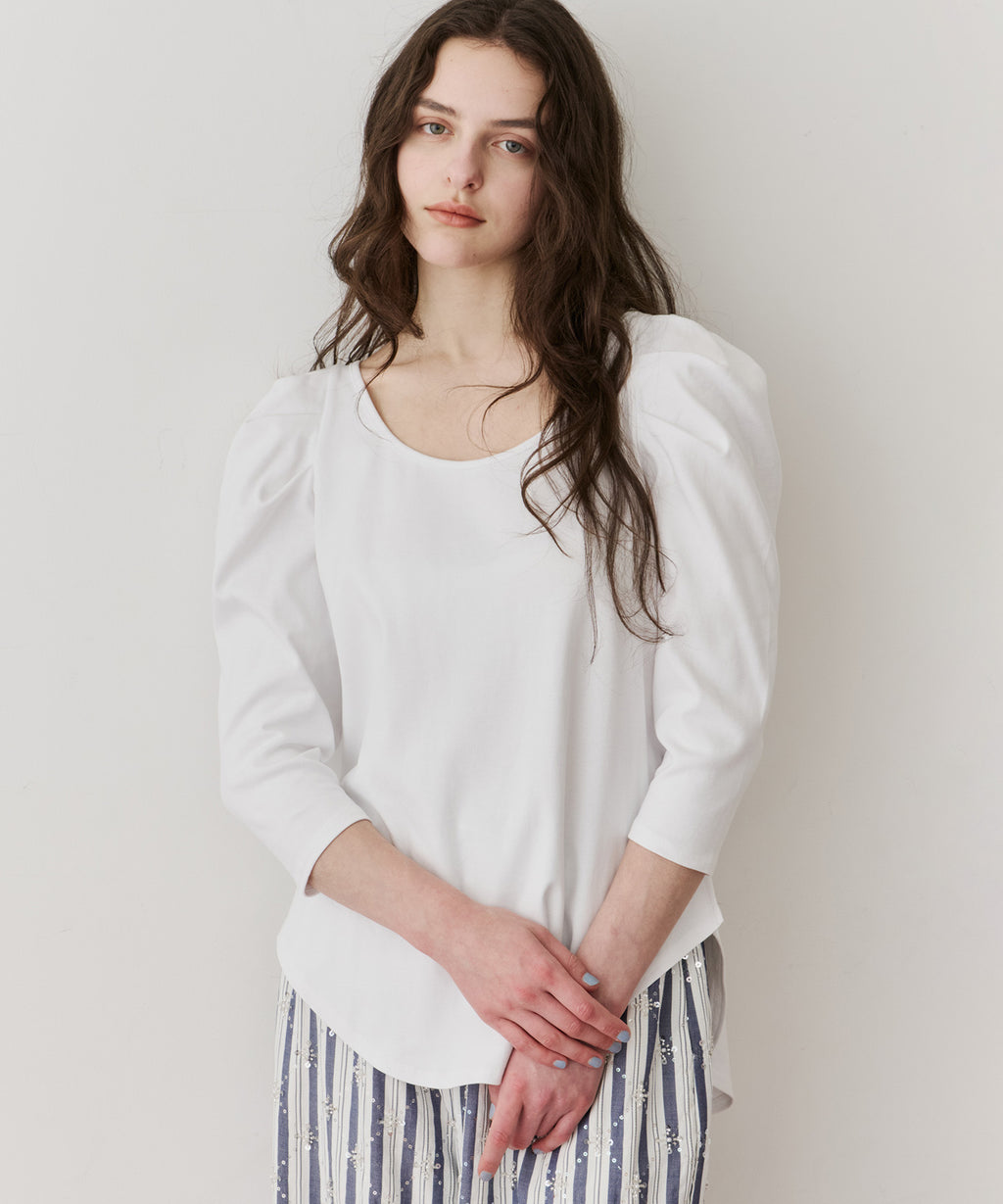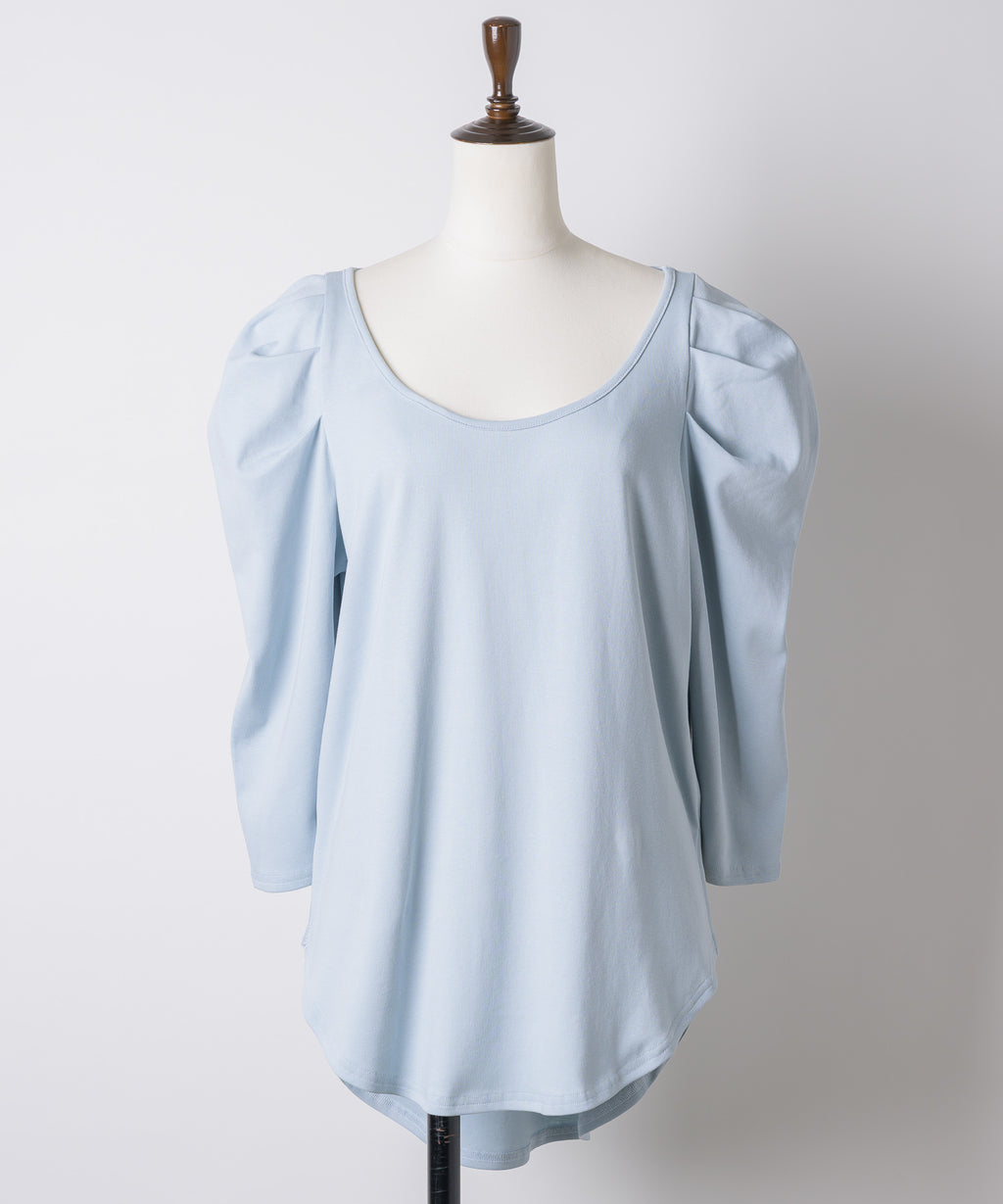ざっくりと開けたUネックに対してギャザーを寄せた