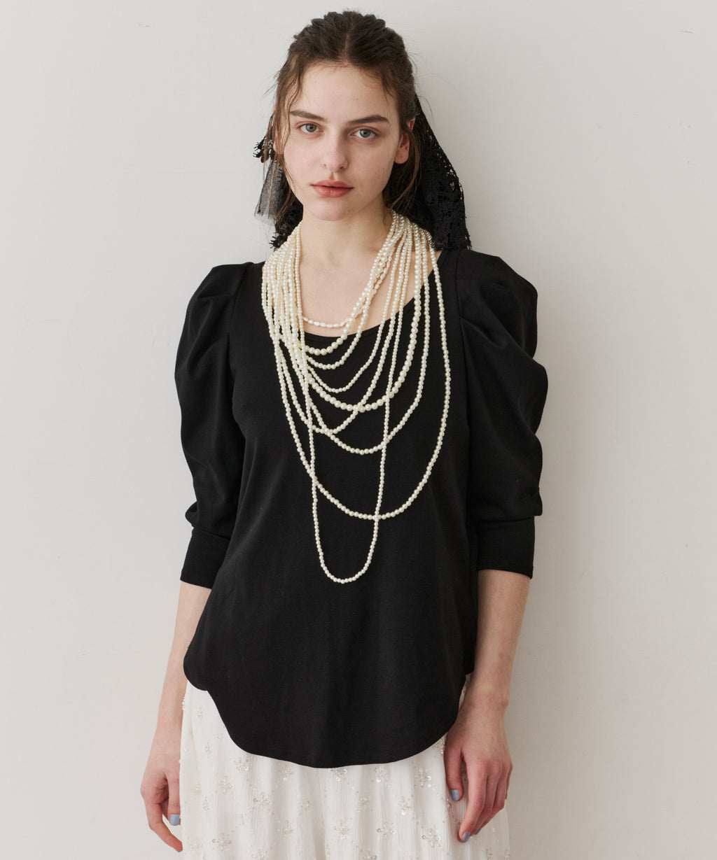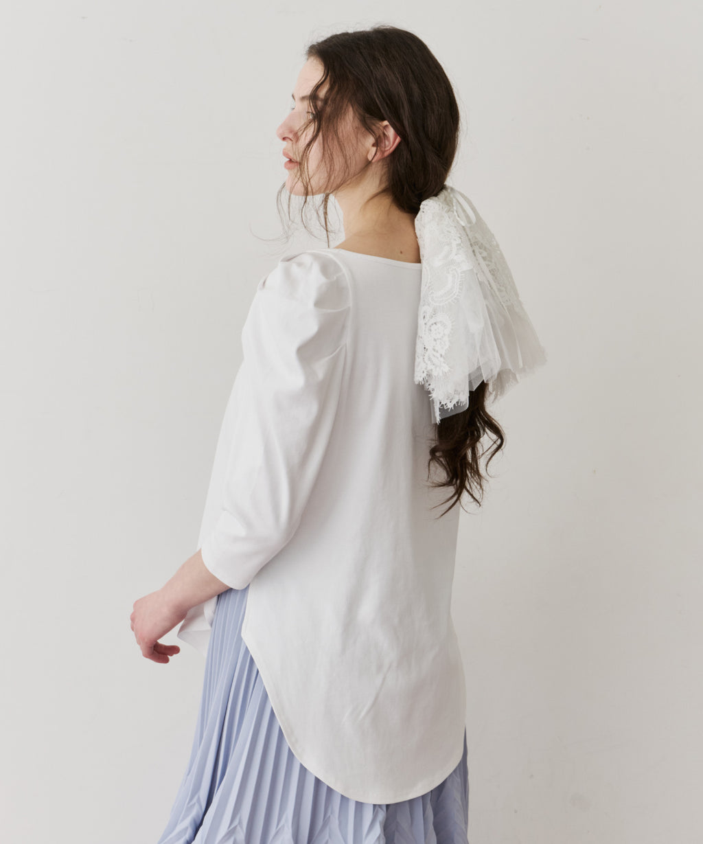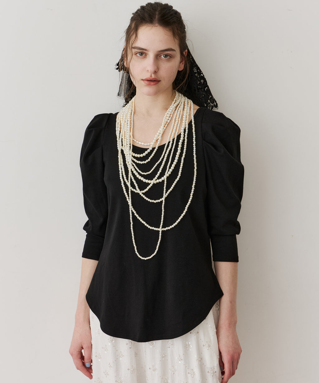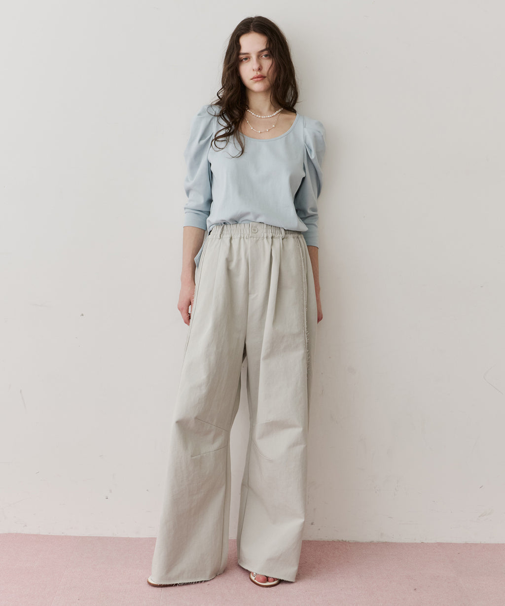 ざっくりと開けたUネックに対してギャザーを寄せた