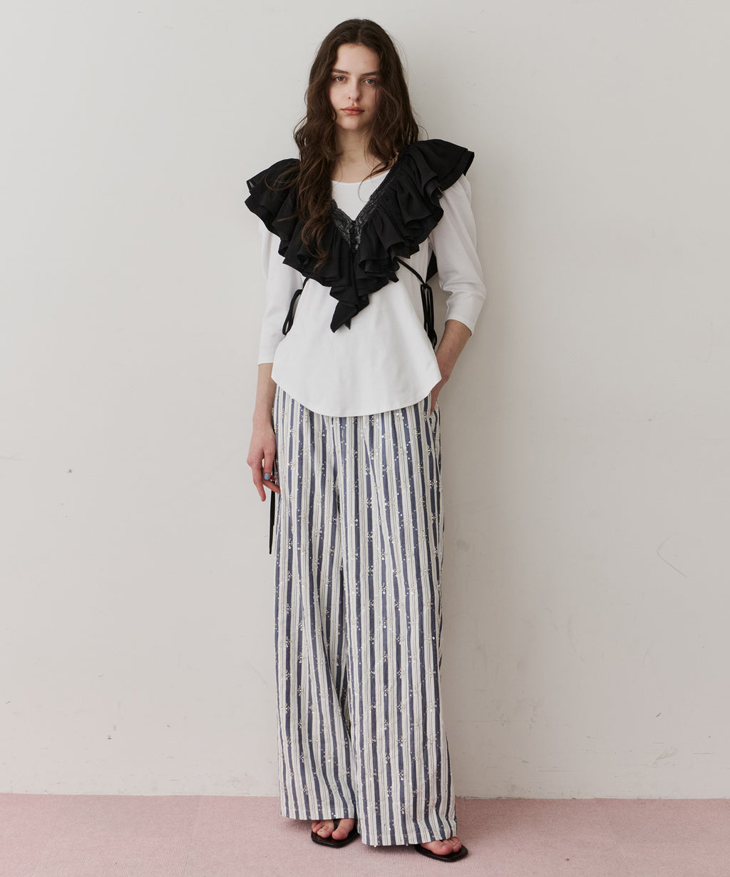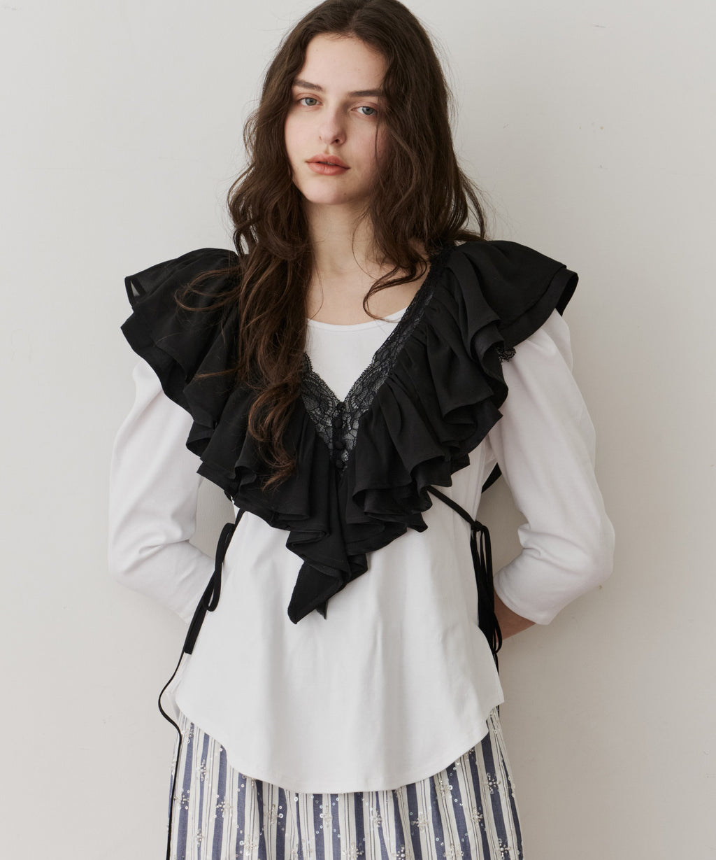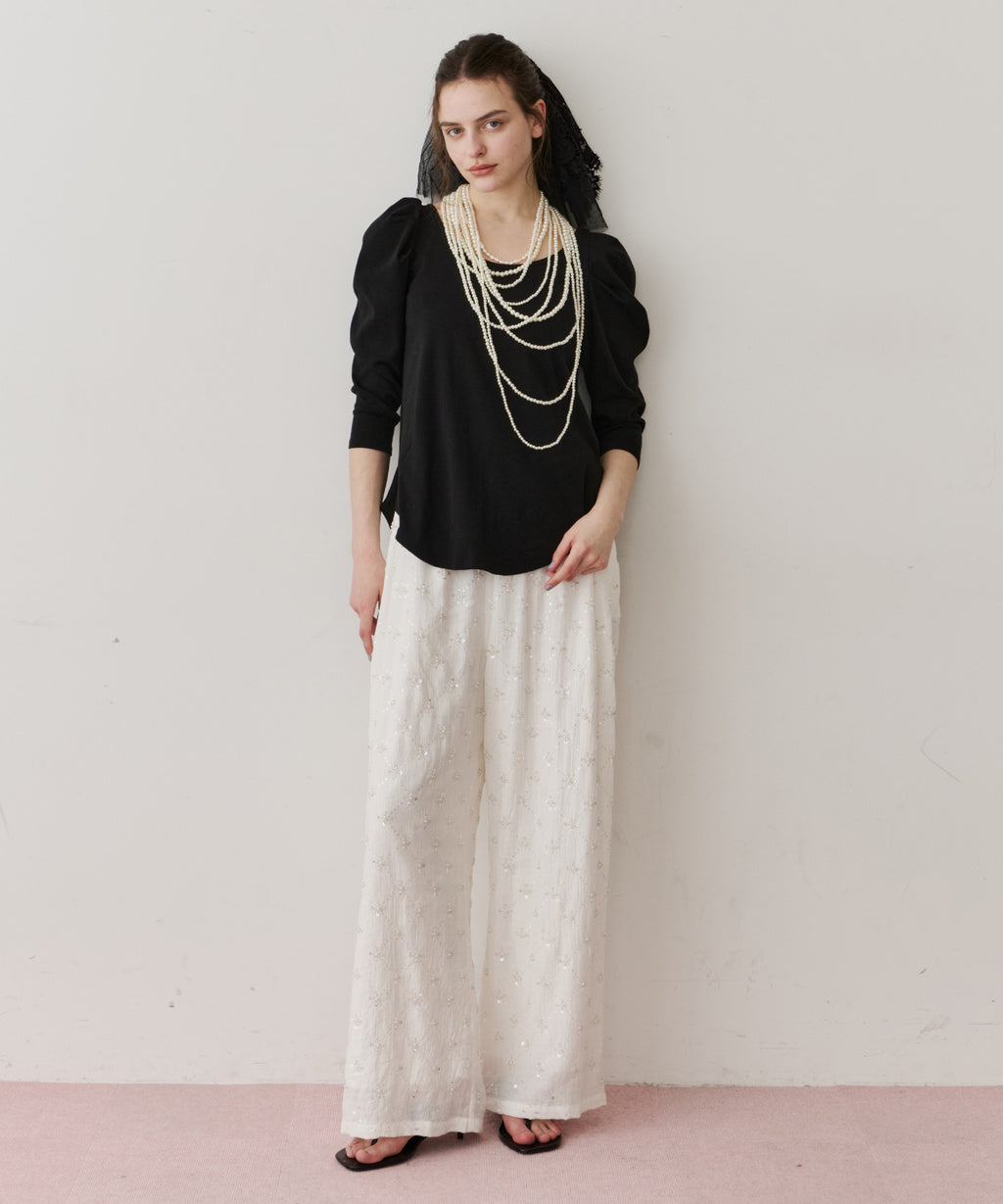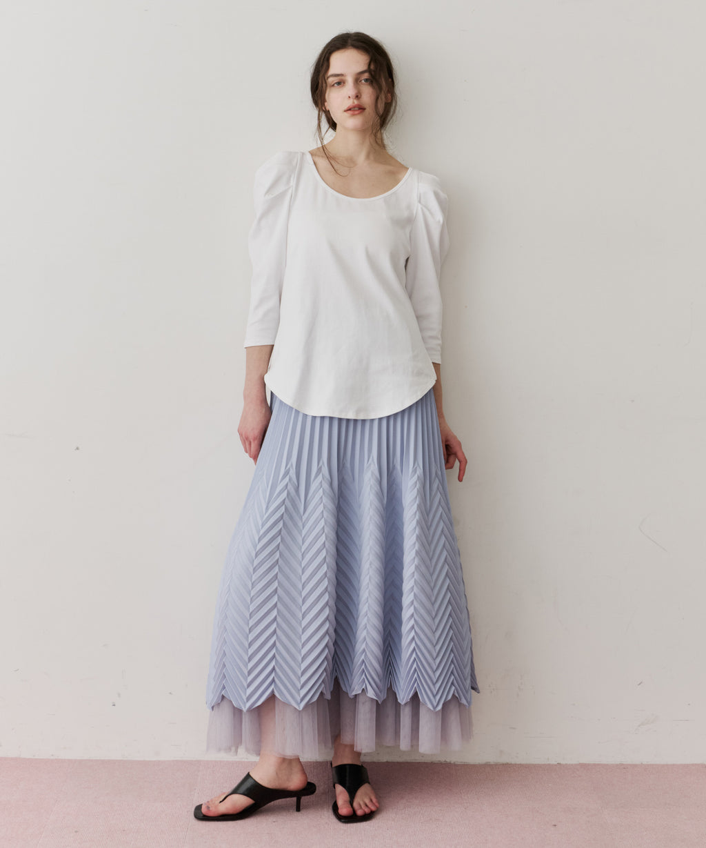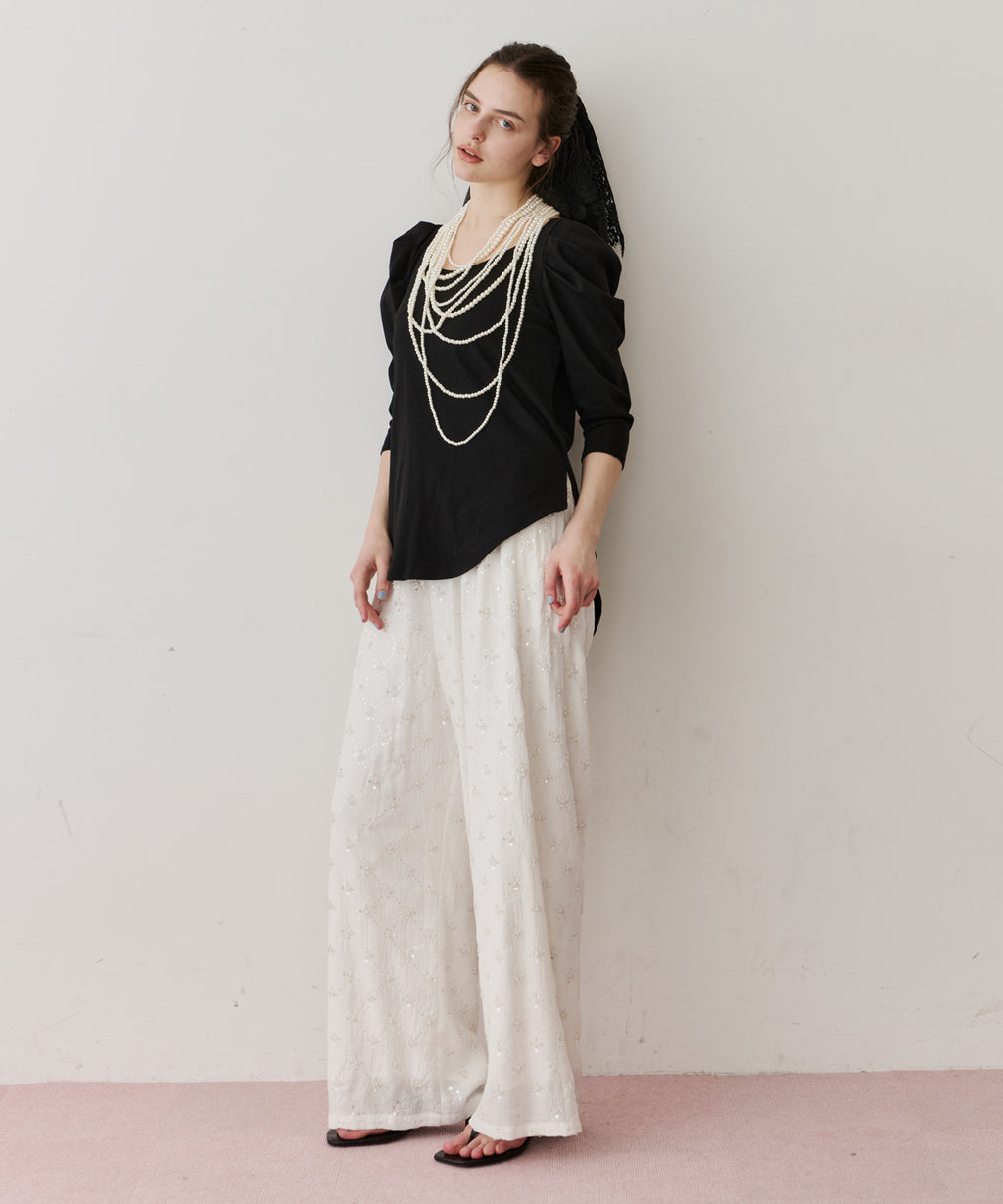 ざっくりと開けたUネックに対してギャザーを寄せた