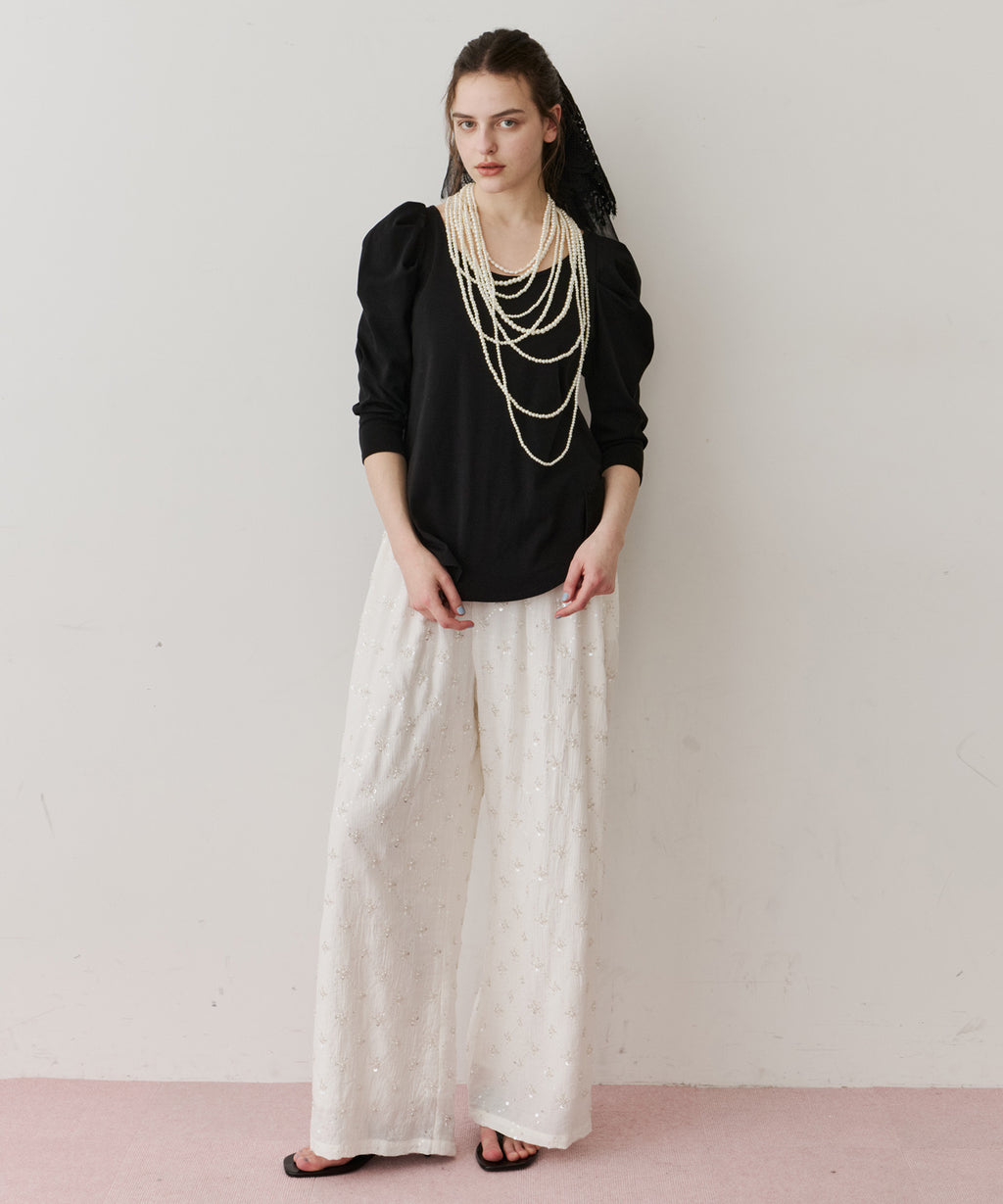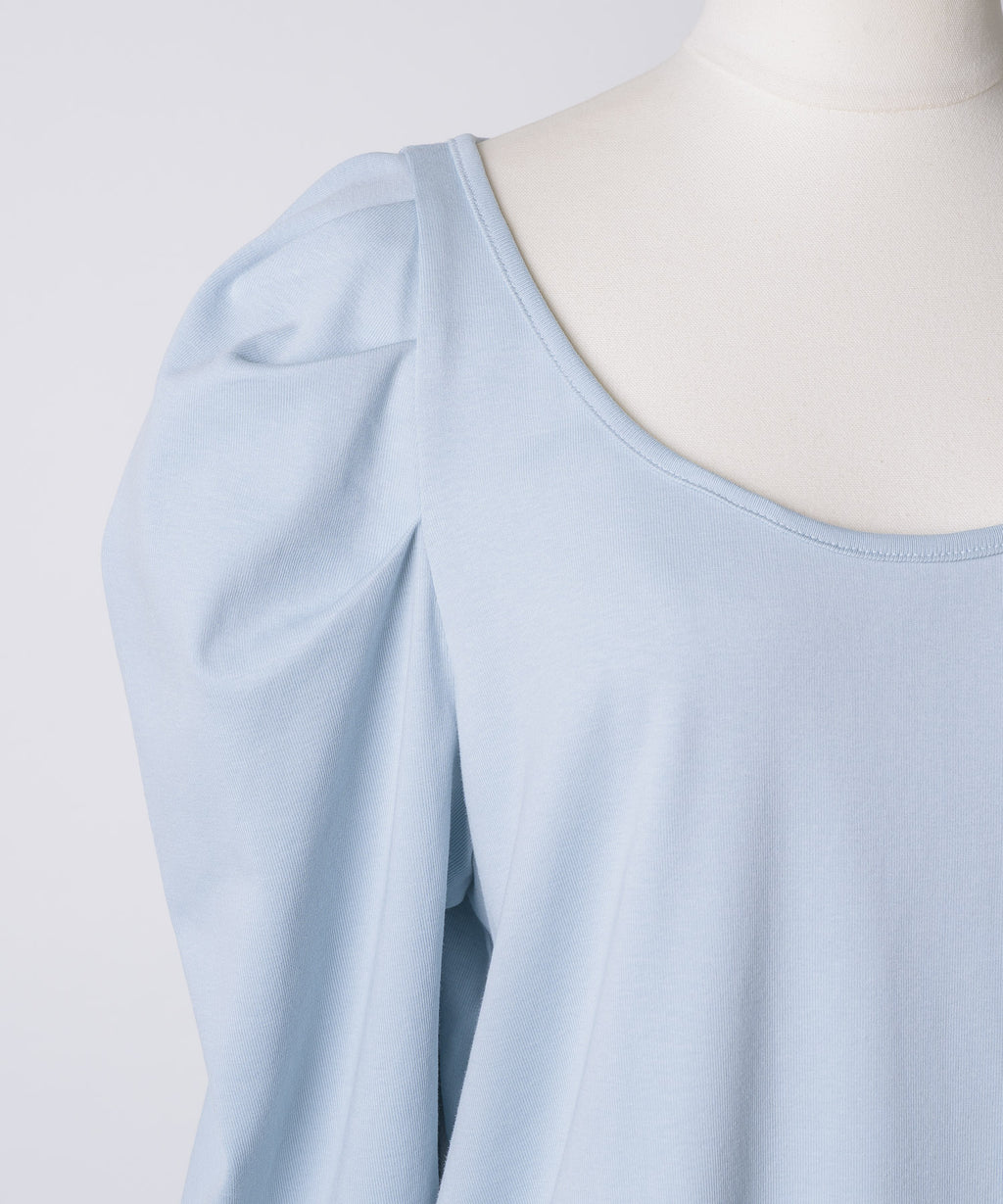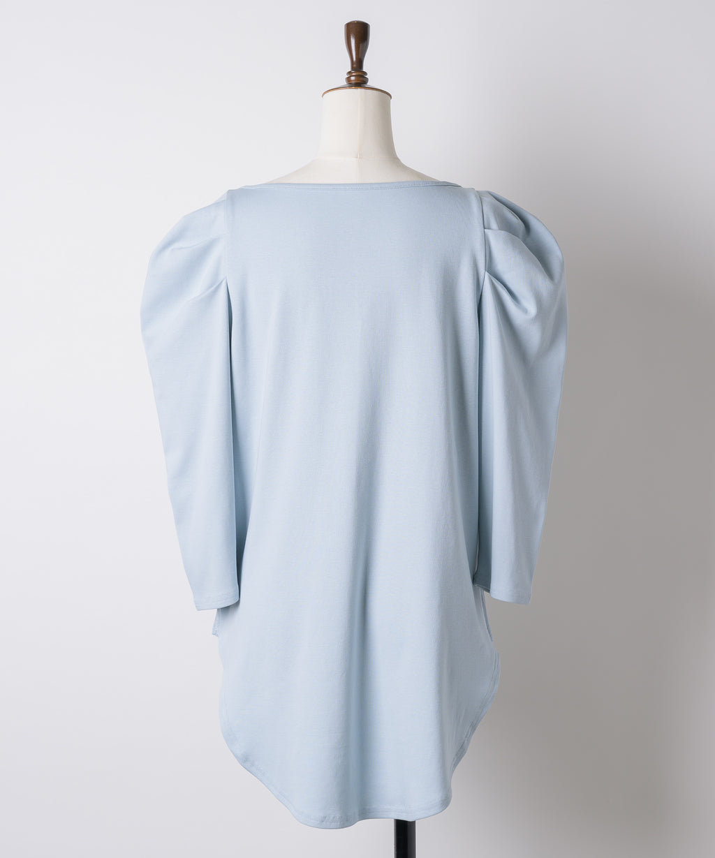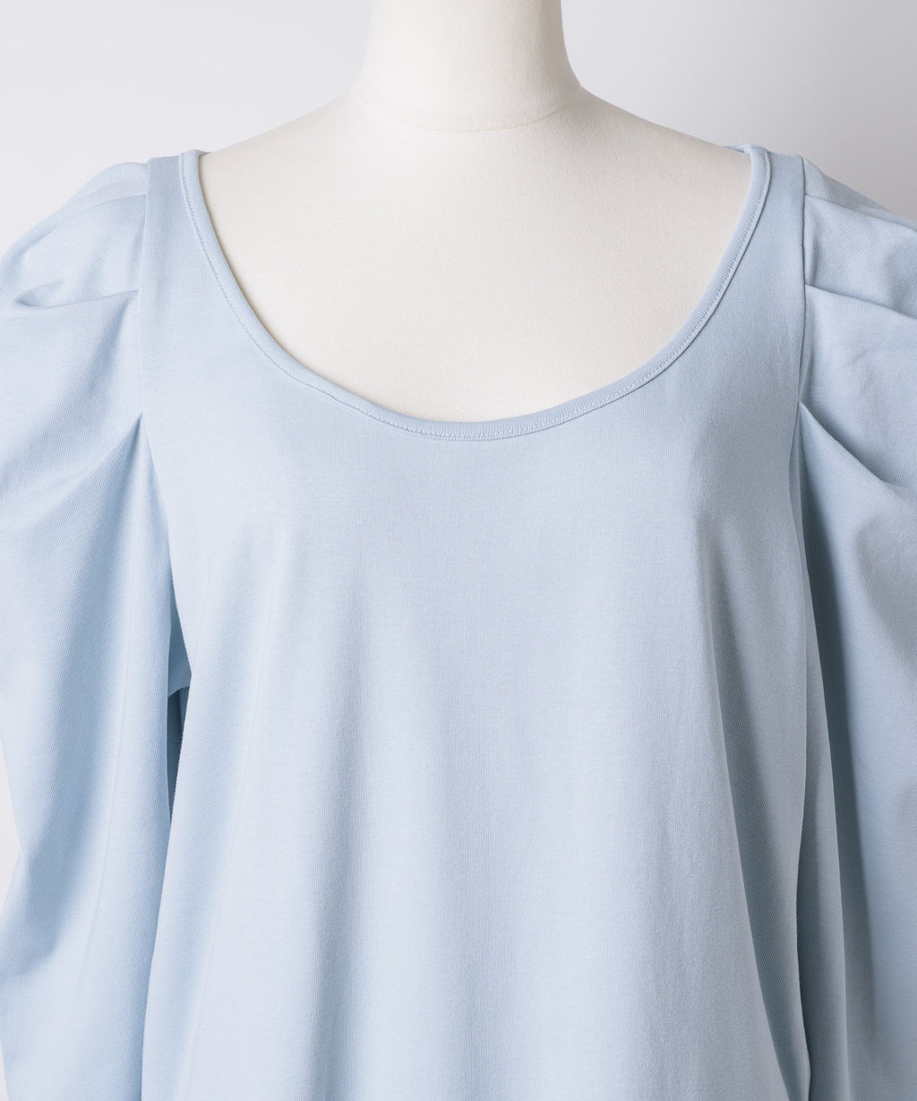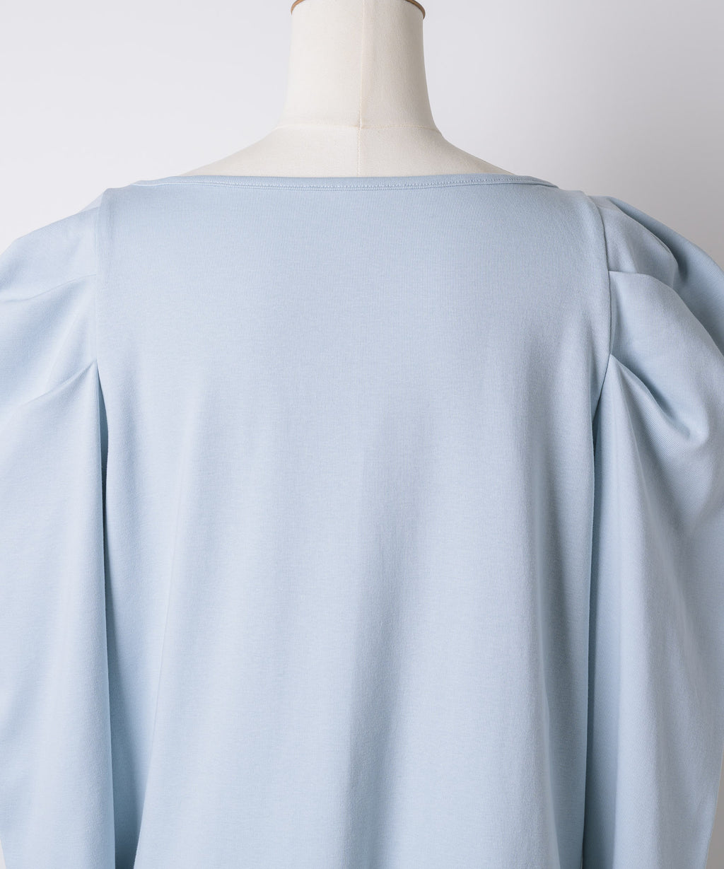 ボリュームスリーブのシルエットがKEEPされる素材感。