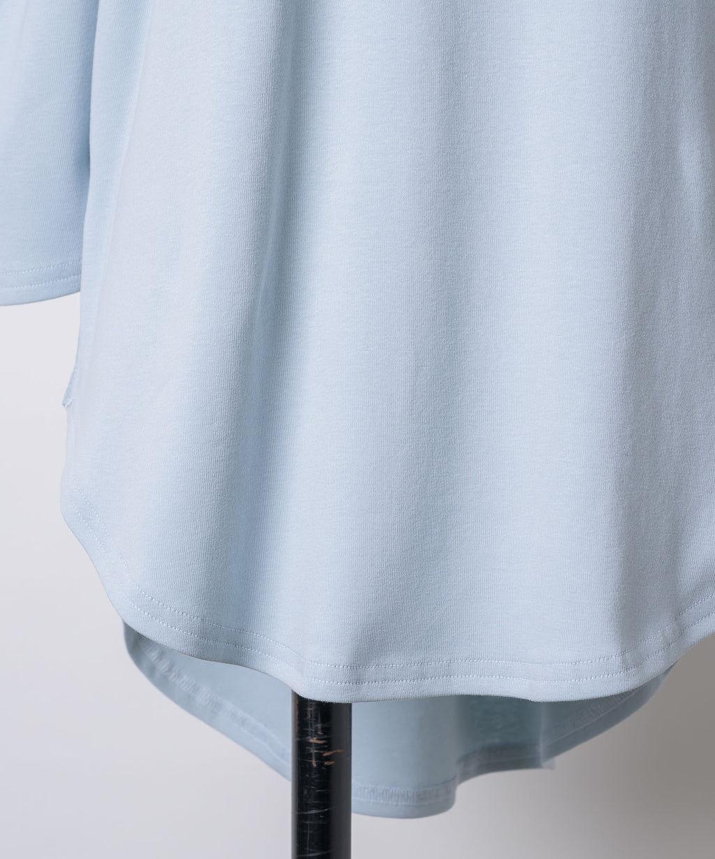 裾がラウンドしているので、タックインせずにそのままのアウトスタイルも◎