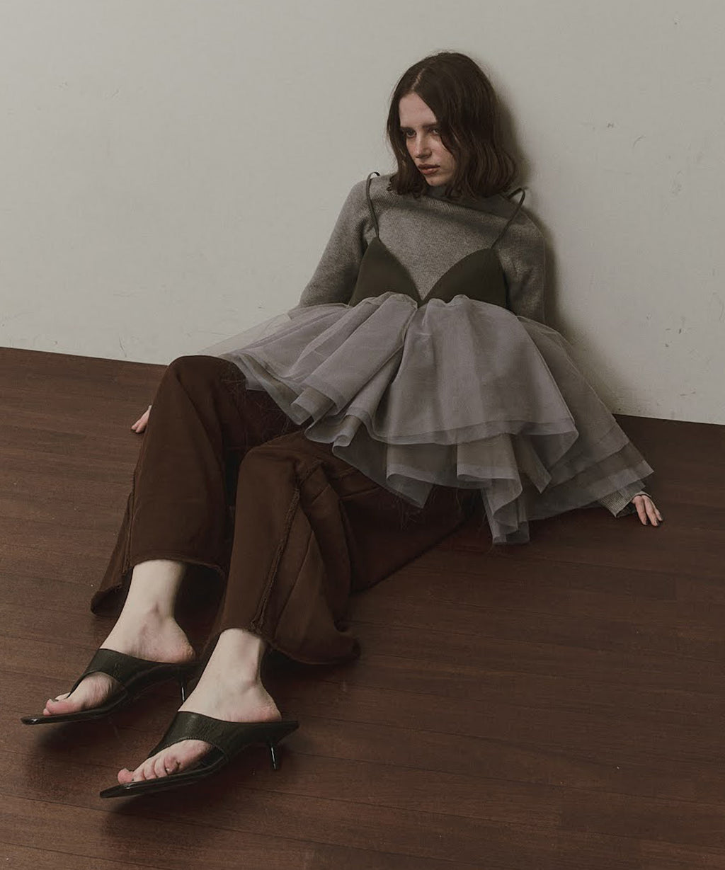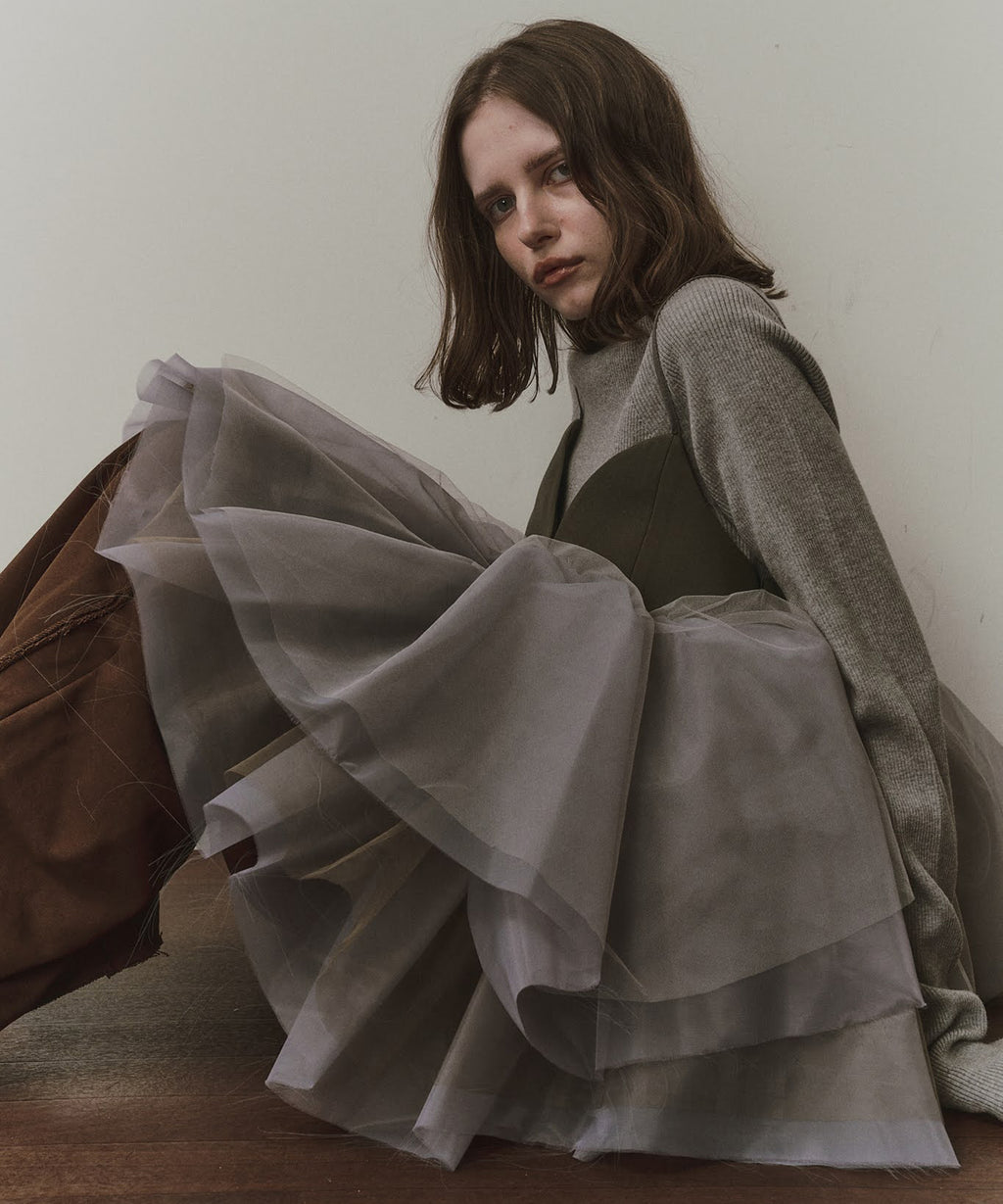 チュールやオーガンジーは裾の始末を断ちっぱなしにする事で軽やかさと程よい抜け感に。