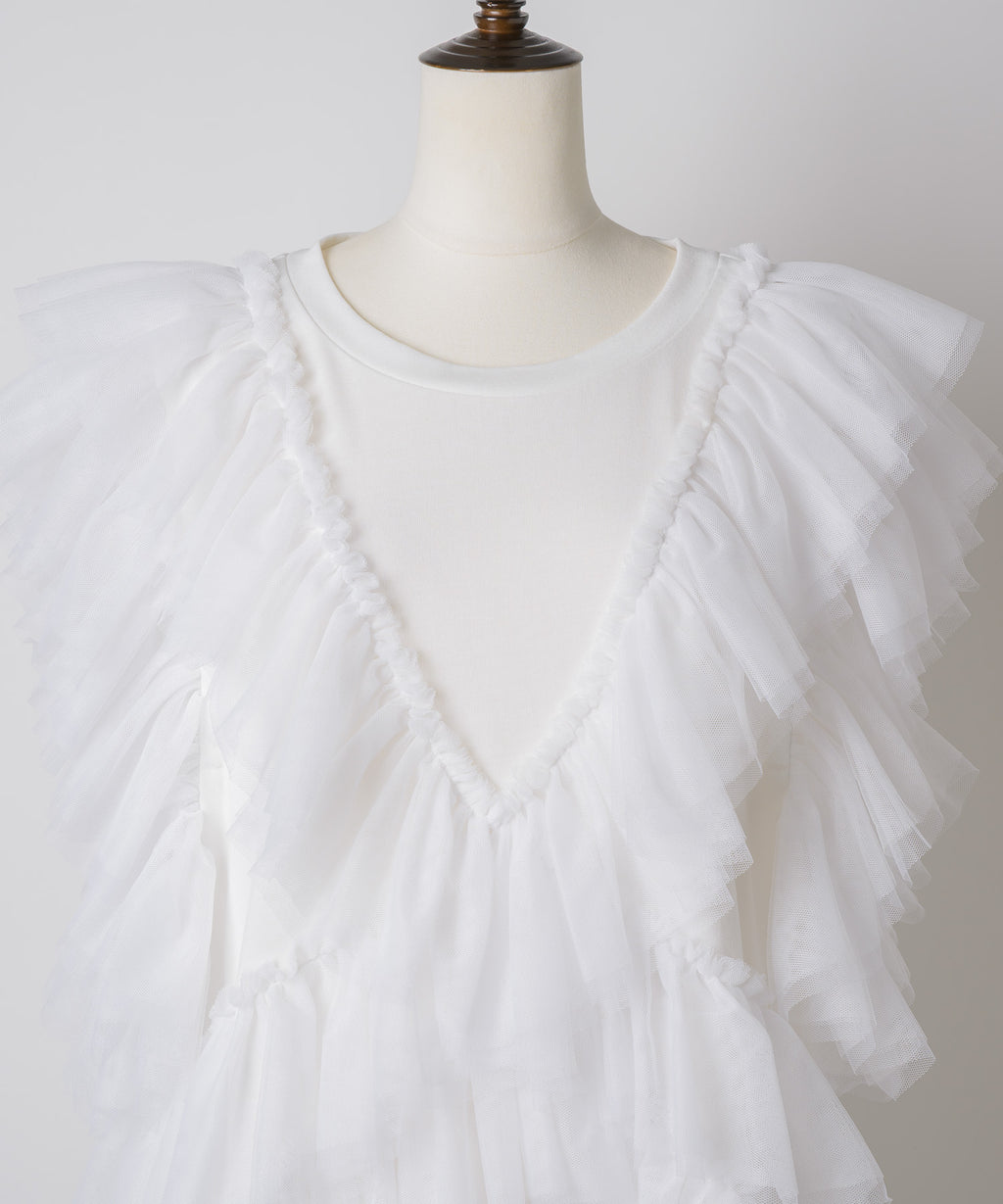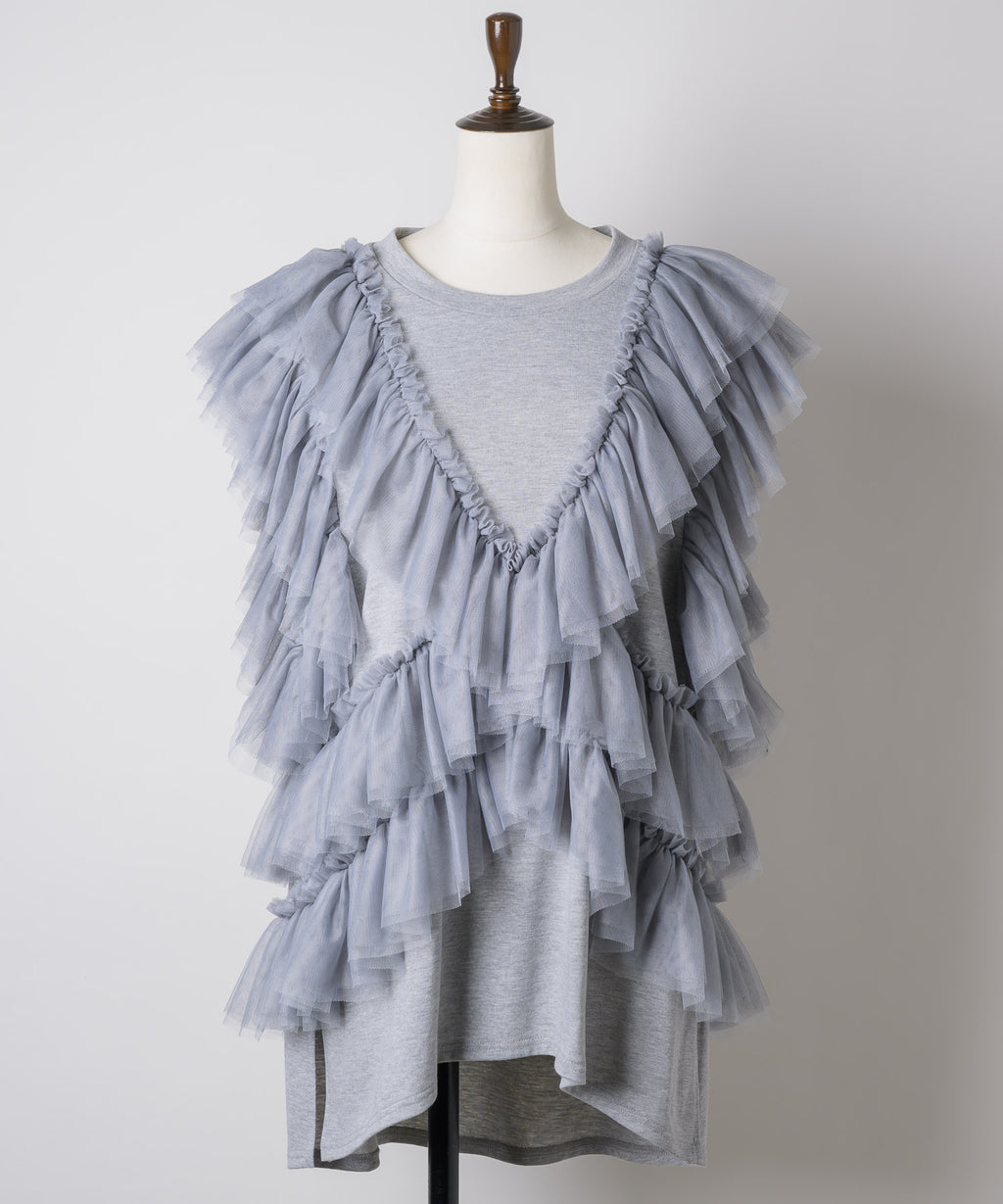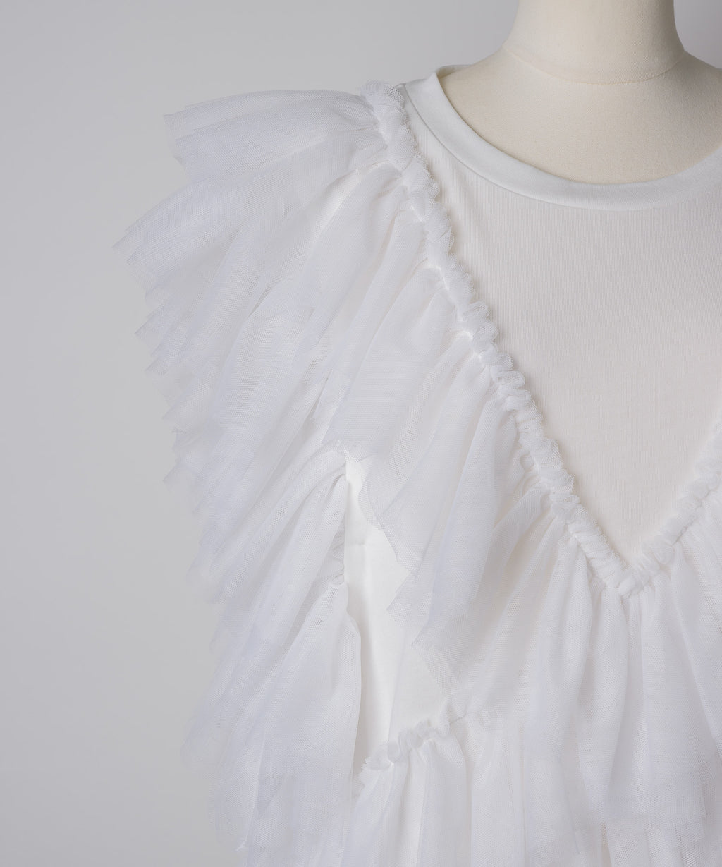 異なるカラーのチュールを重ね、色差をつけることで奥行きのある立体的な印象に。