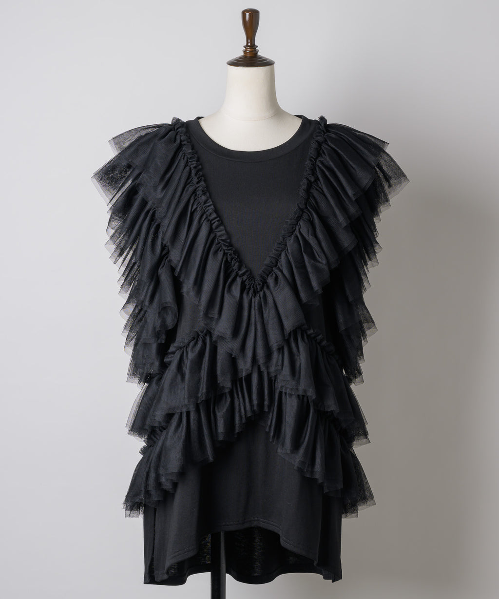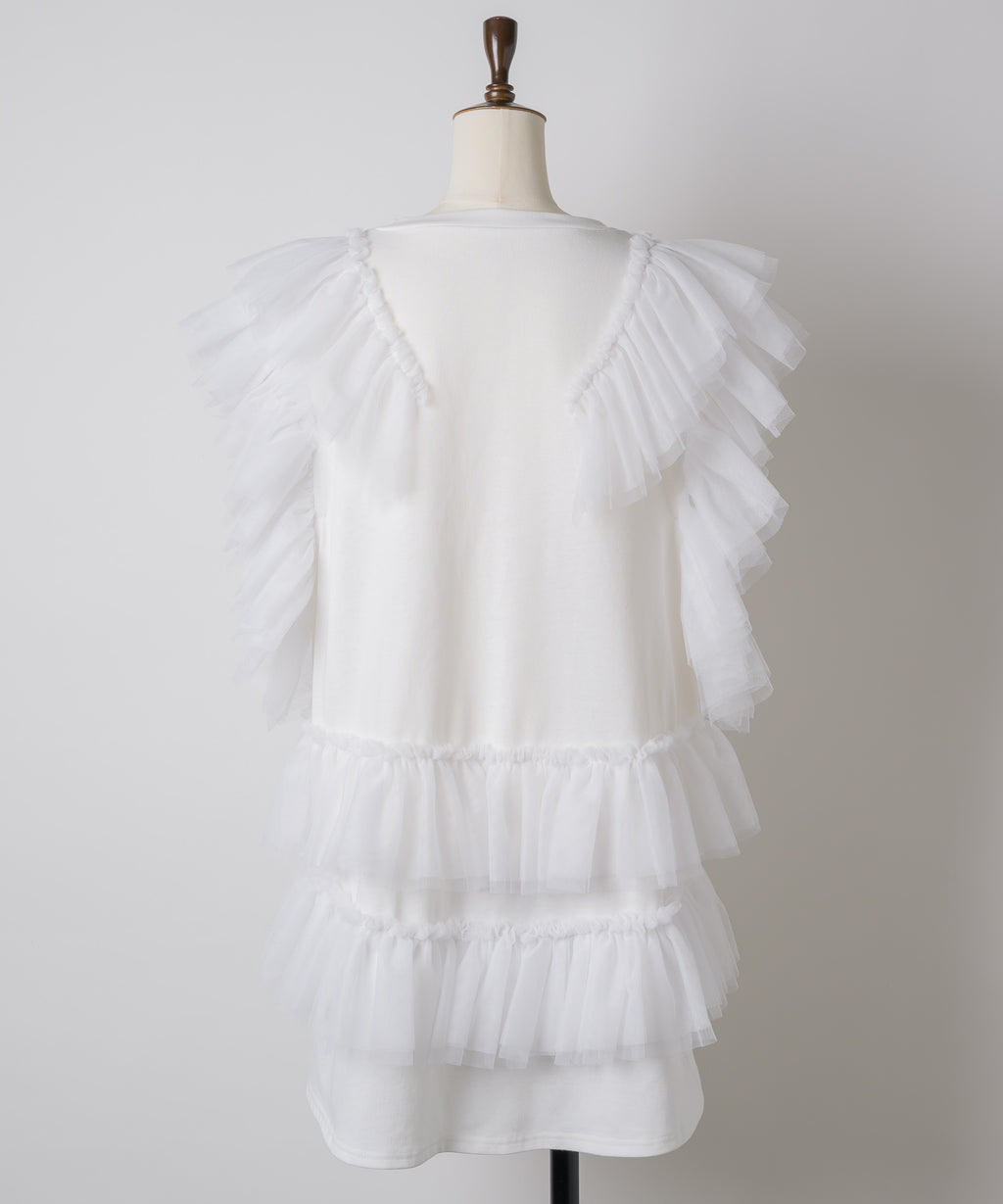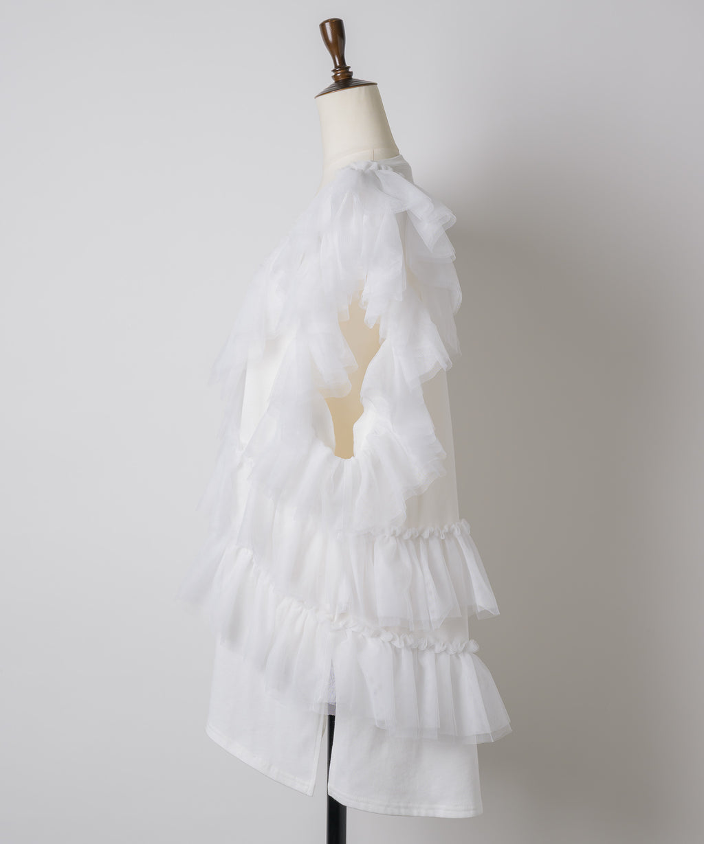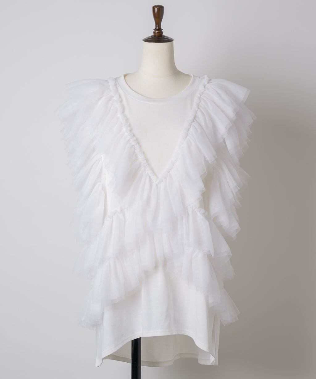 異なるカラーのチュールを重ね、色差をつけることで奥行きのある立体的な印象に。