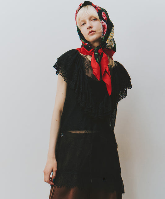 フリルの裾はあえて切りっぱなしで、かっちりとしすぎない抜け感とヴィンテージ感のあるデザインに仕上げました。