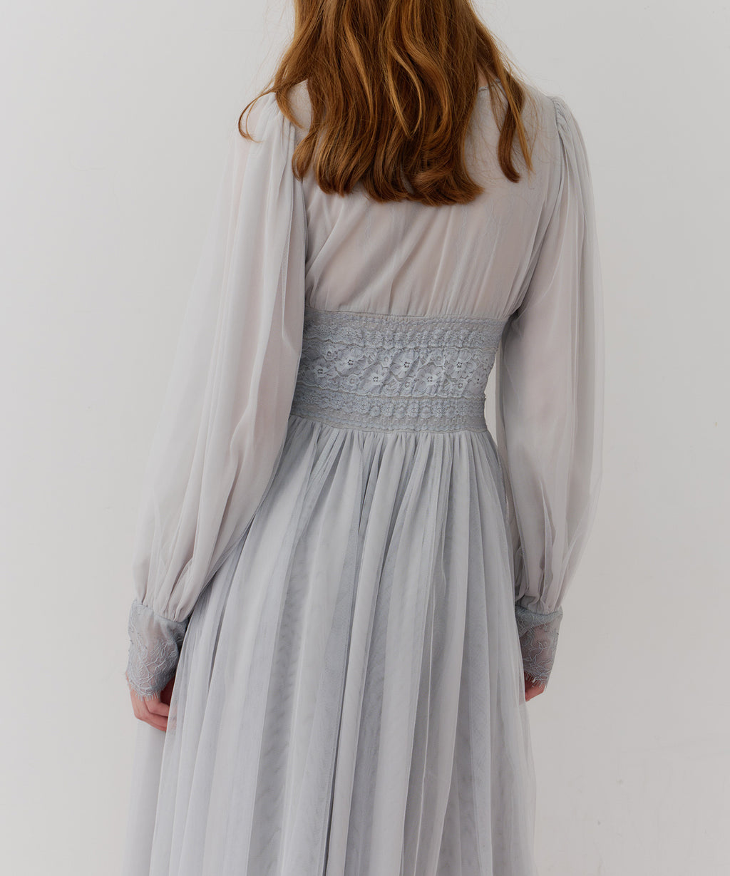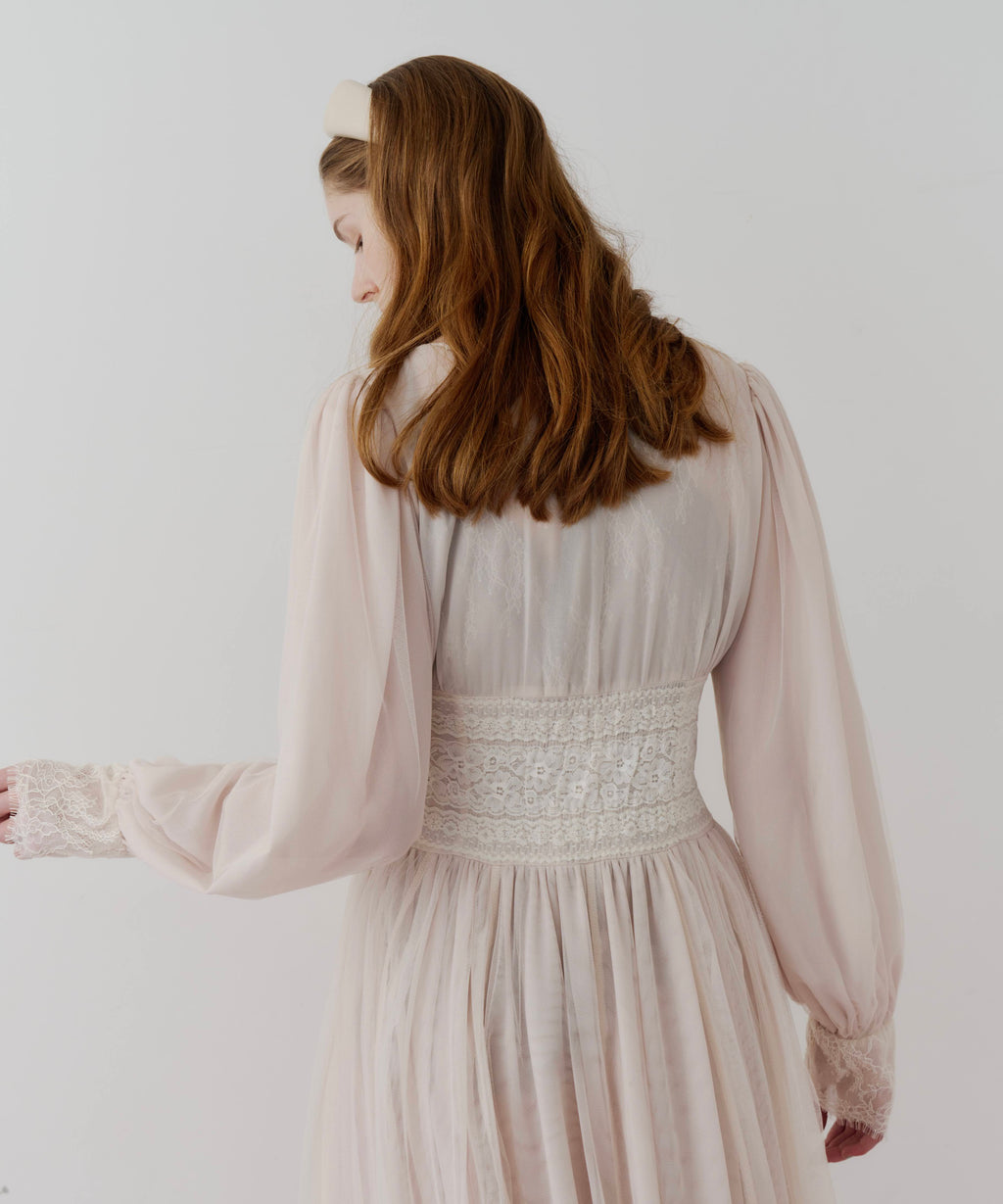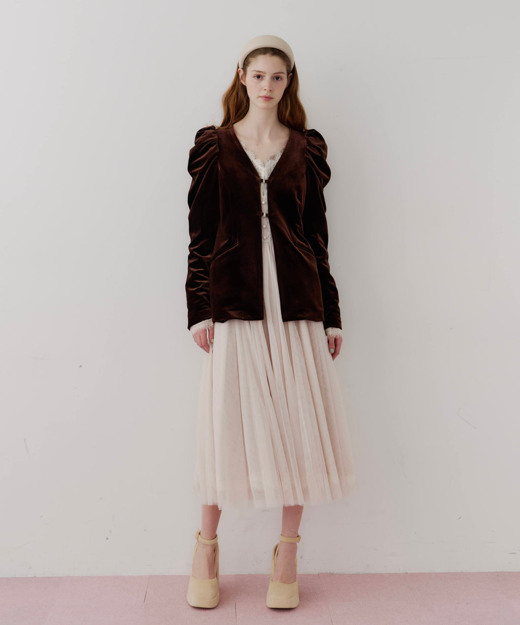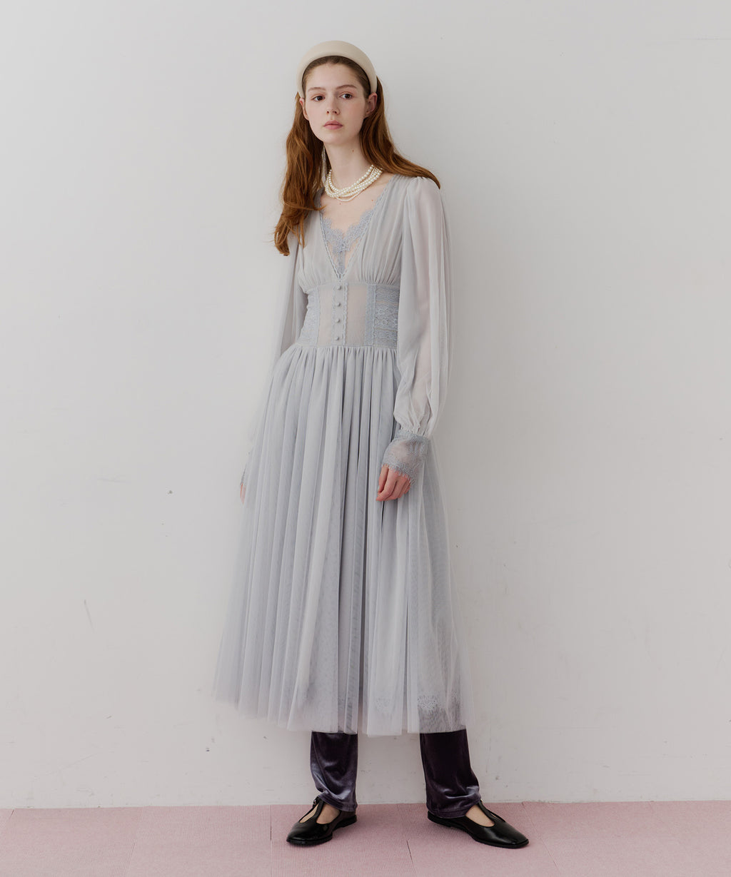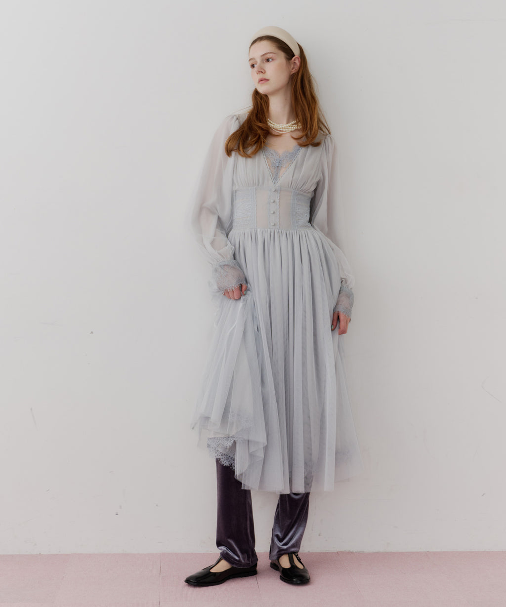 スカート部分はシフォンの上に二枚のチュールを重ね、軽やかな着心地と見え方に。
