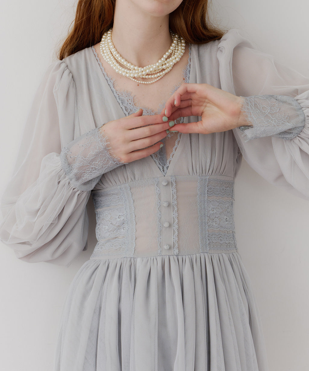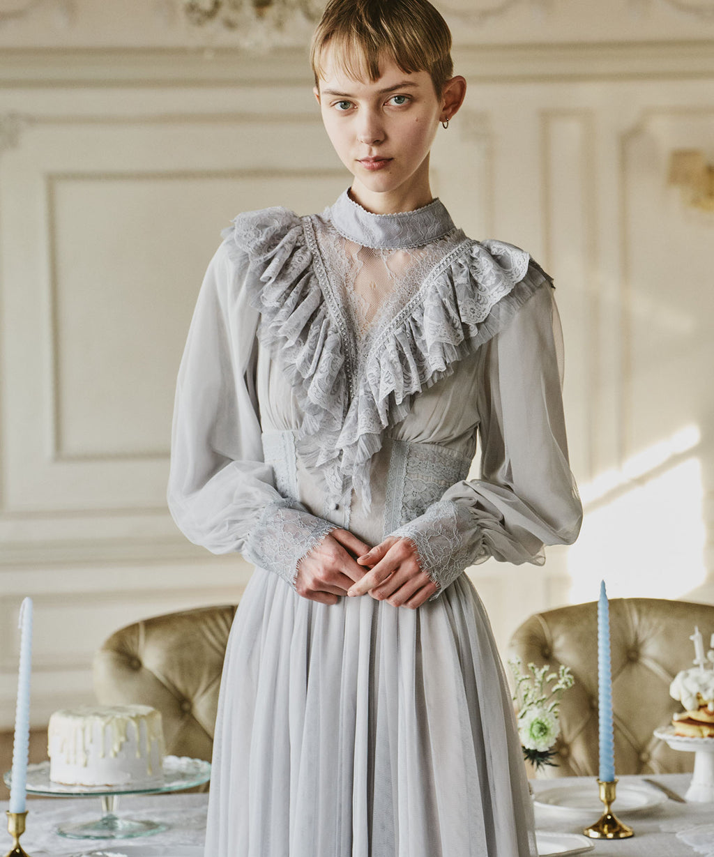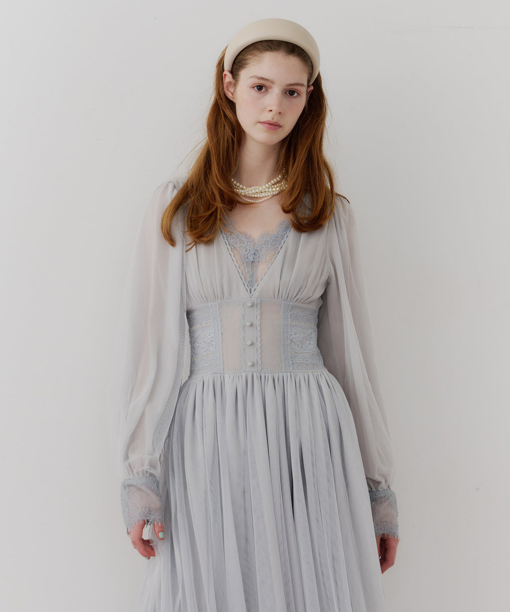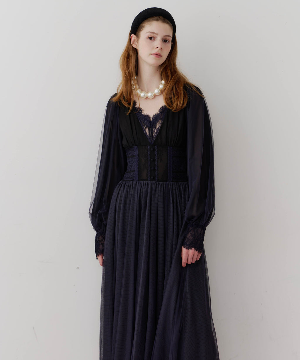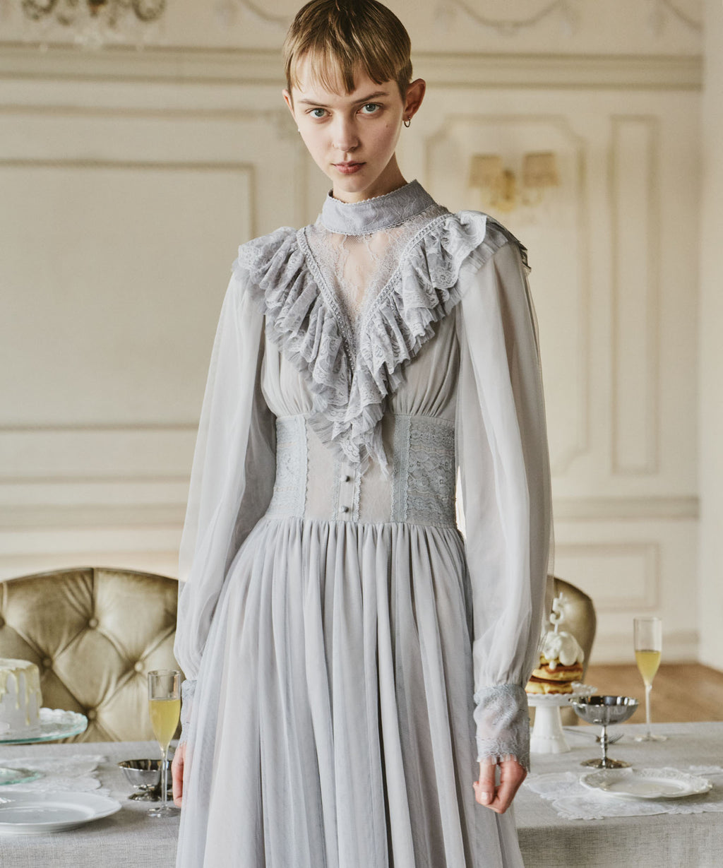 スカート部分はシフォンの上に二枚のチュールを重ね、軽やかな着心地と見え方に。