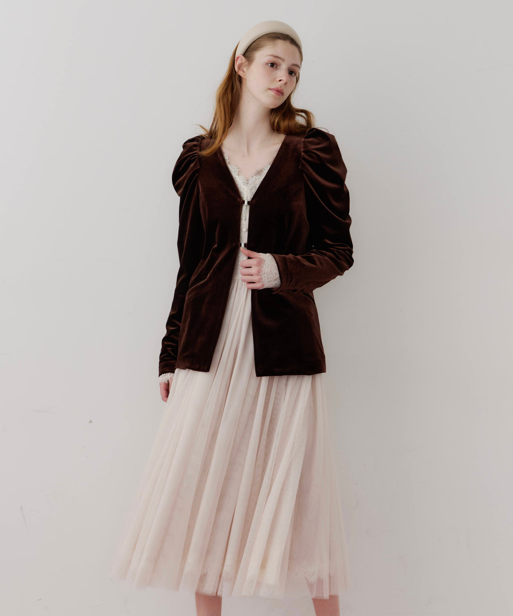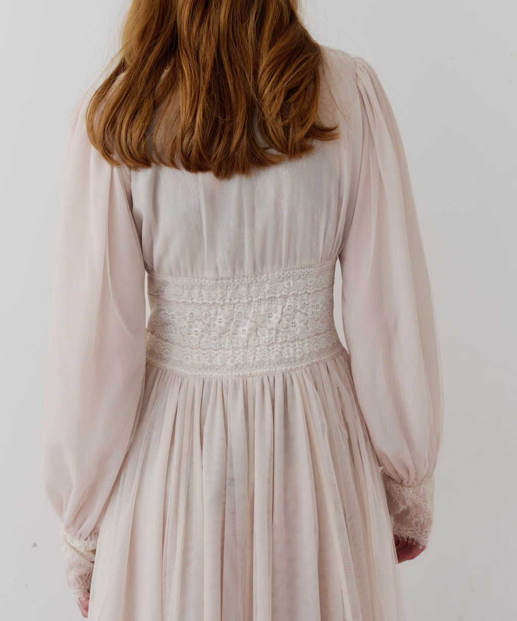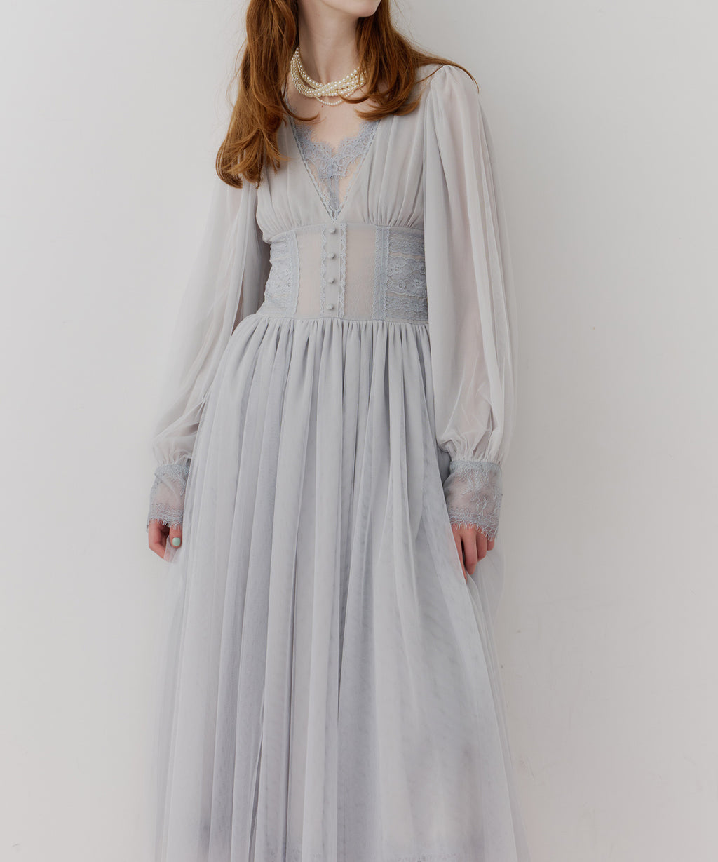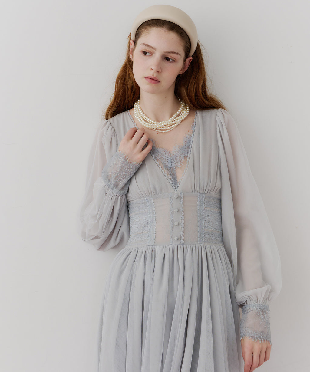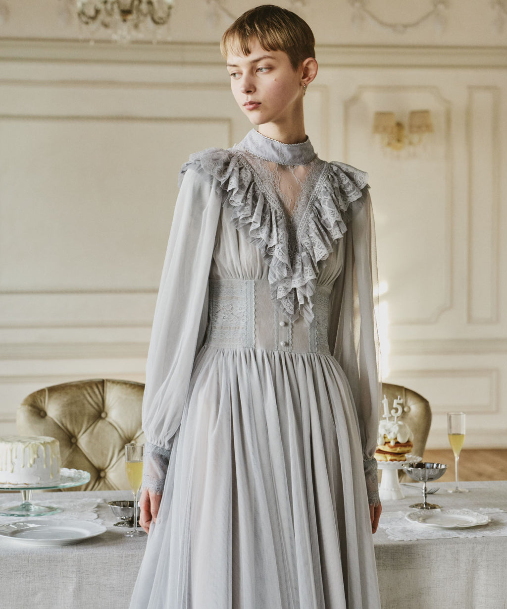 スカート部分はシフォンの上に二枚のチュールを重ね、軽やかな着心地と見え方に。