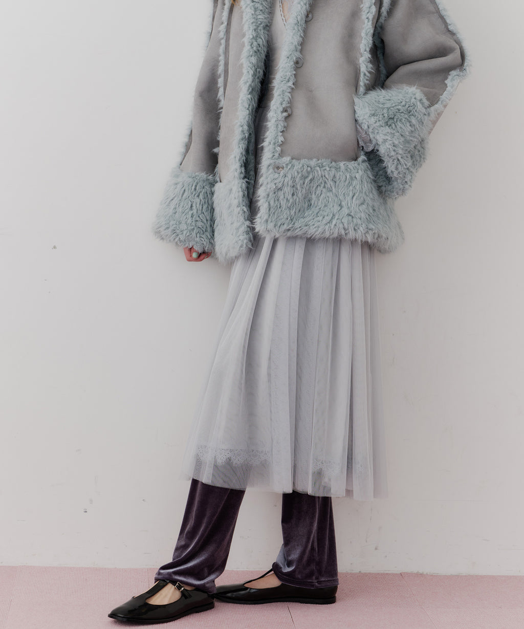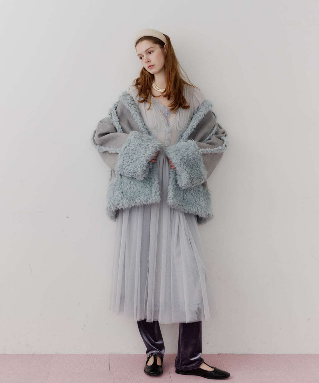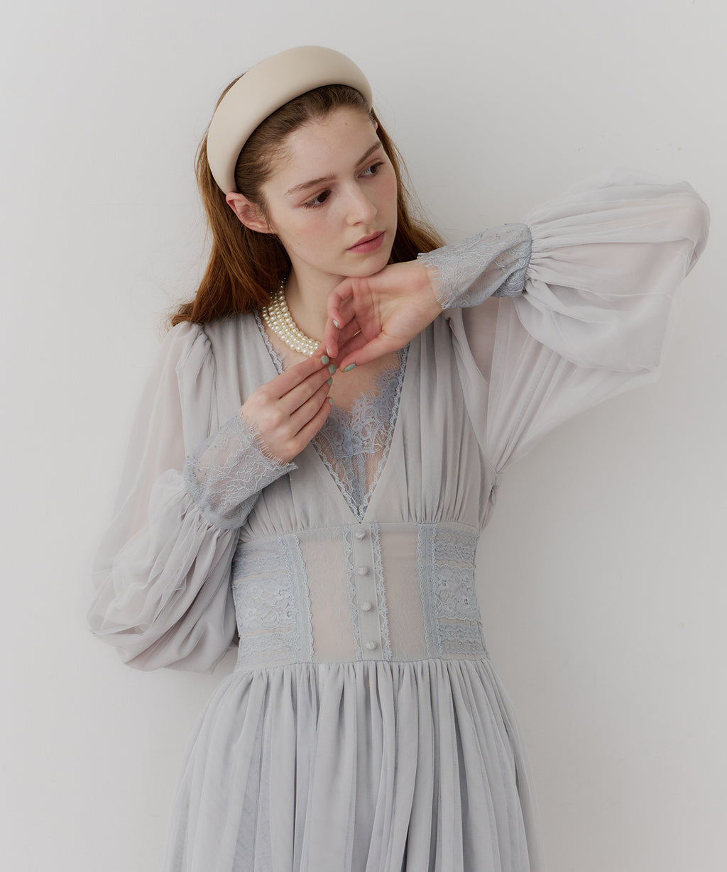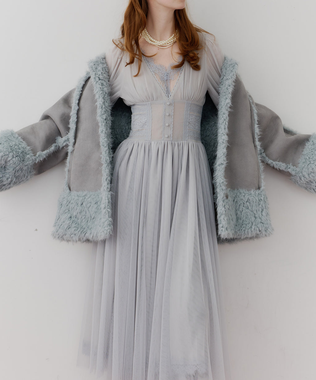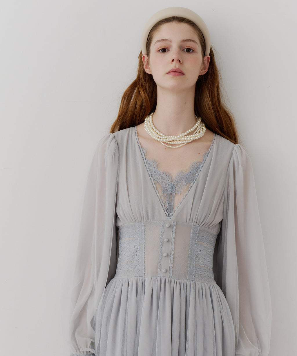 スカート部分はシフォンの上に二枚のチュールを重ね、軽やかな着心地と見え方に。