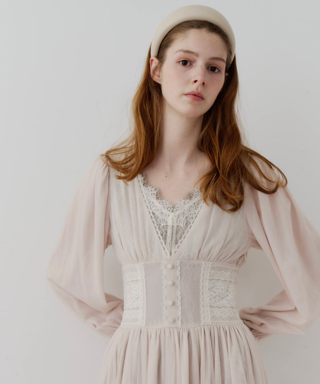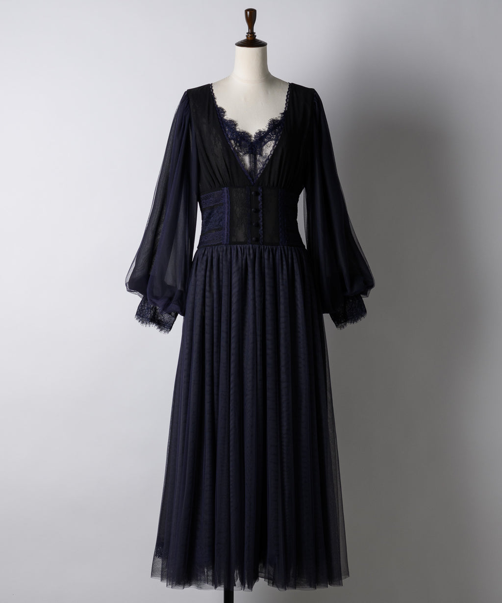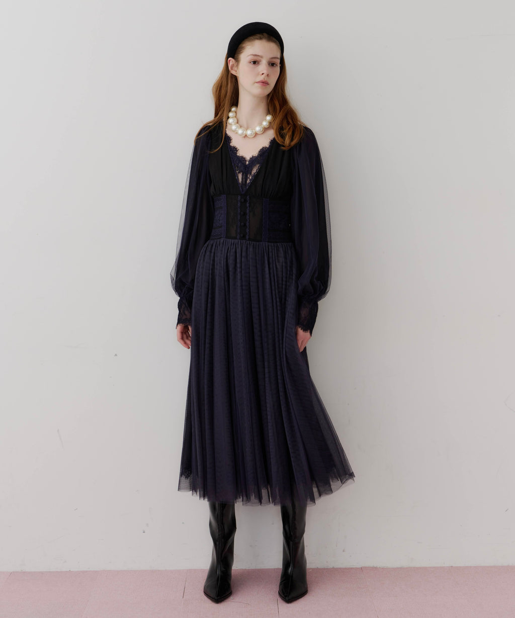 バスト下はコルセット調デザインとなっていて