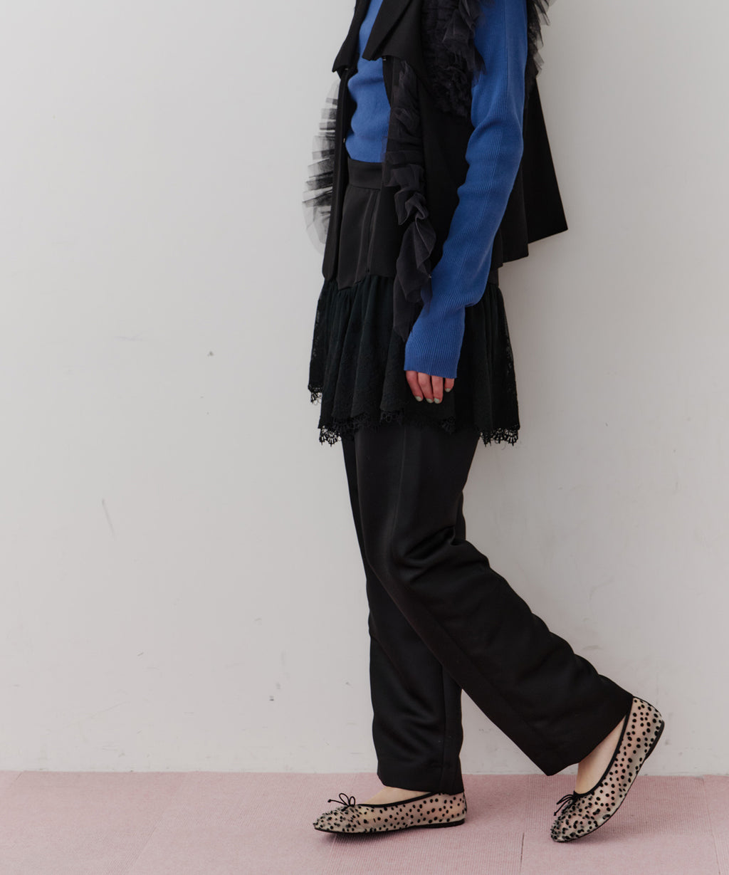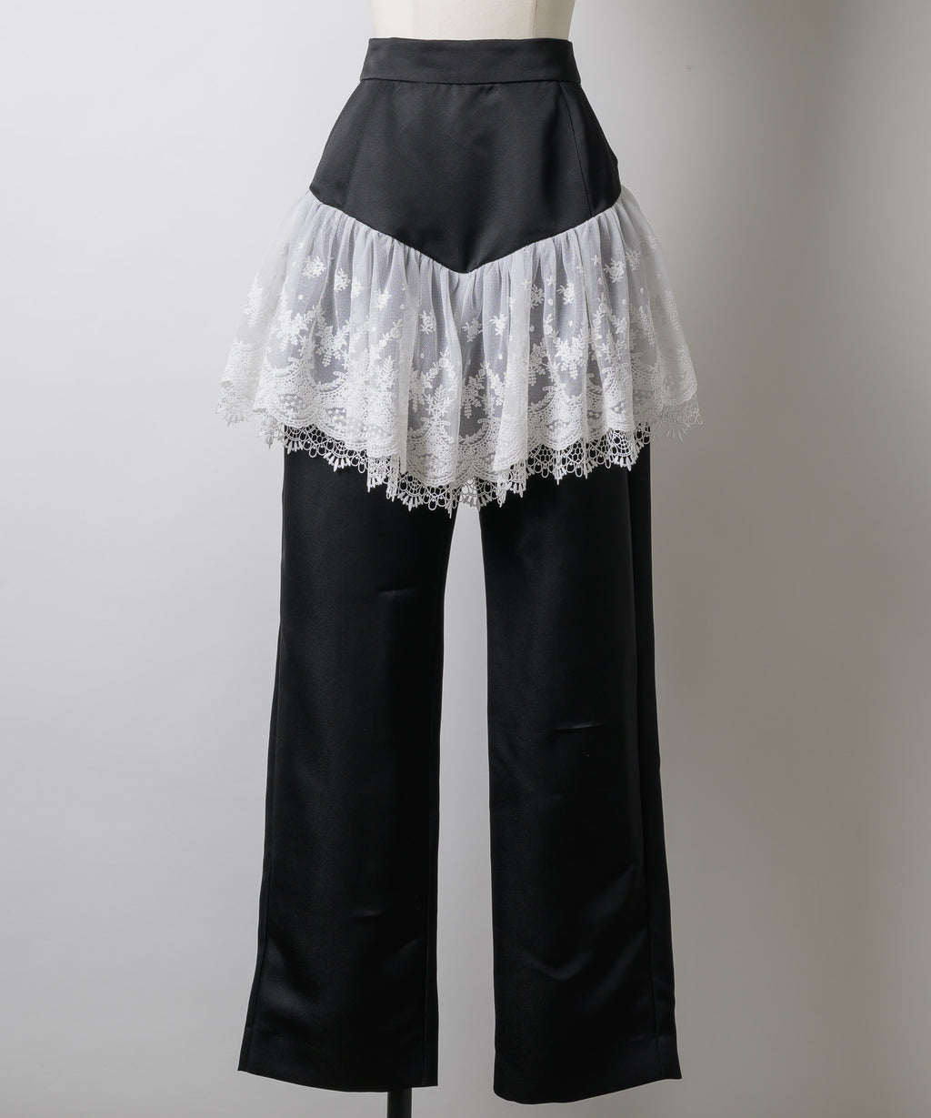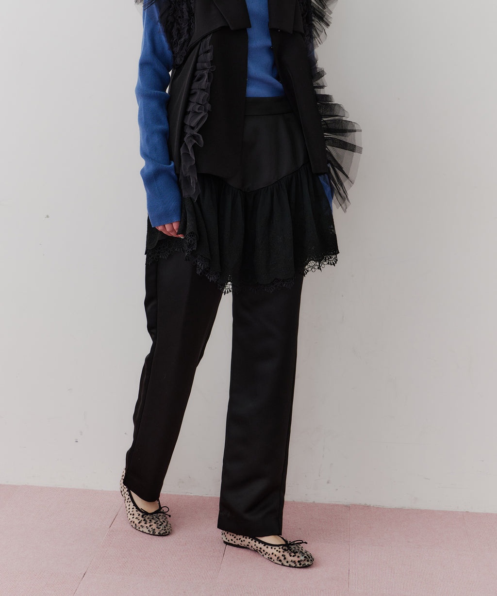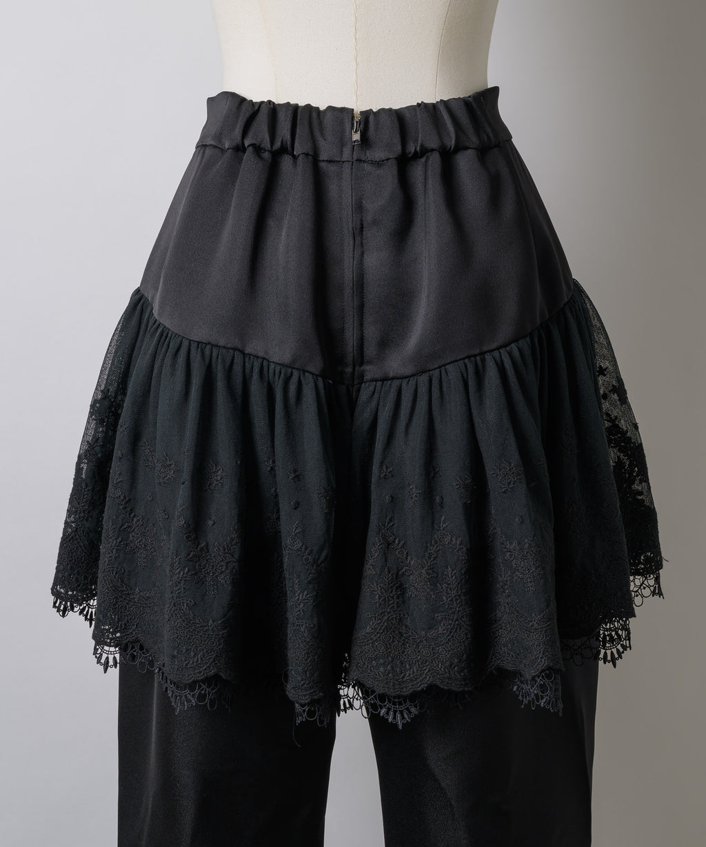 シンプルなストレートパンツにクラシカルレースをドッキング。