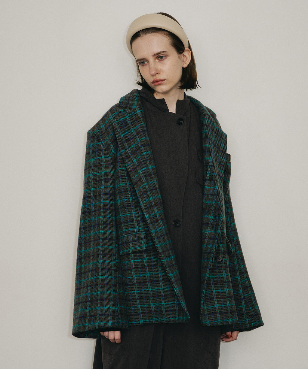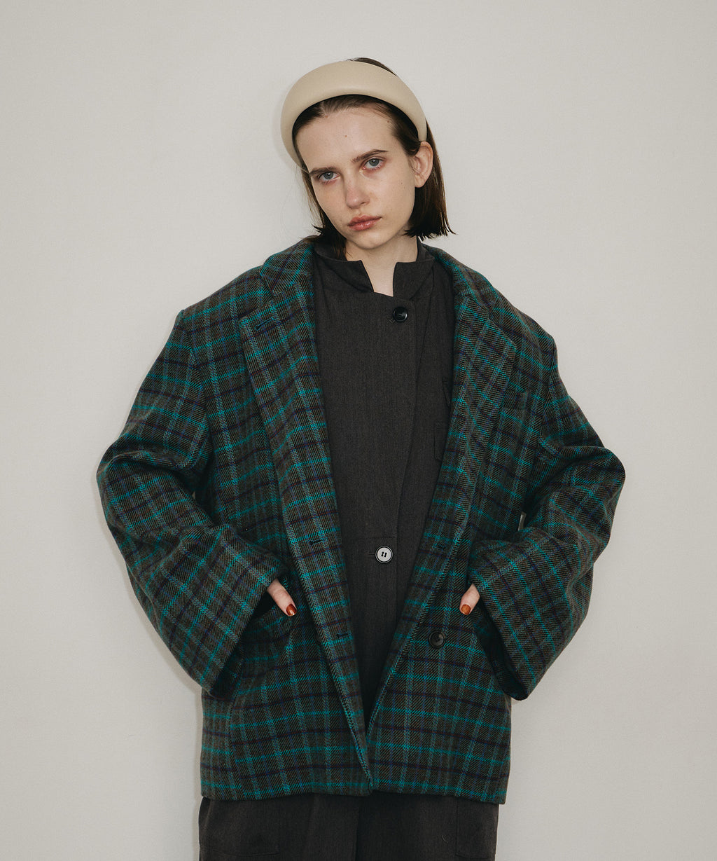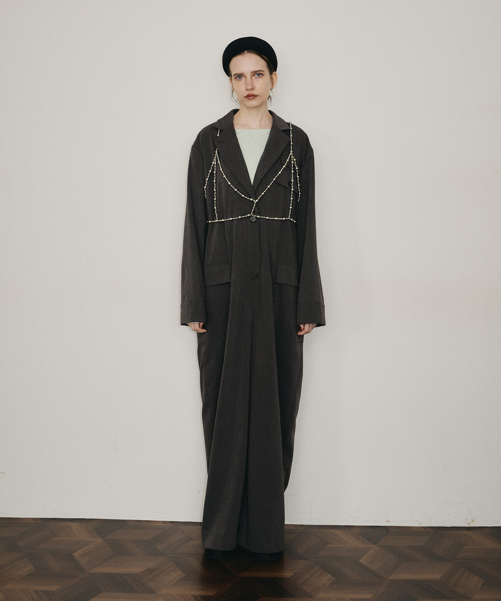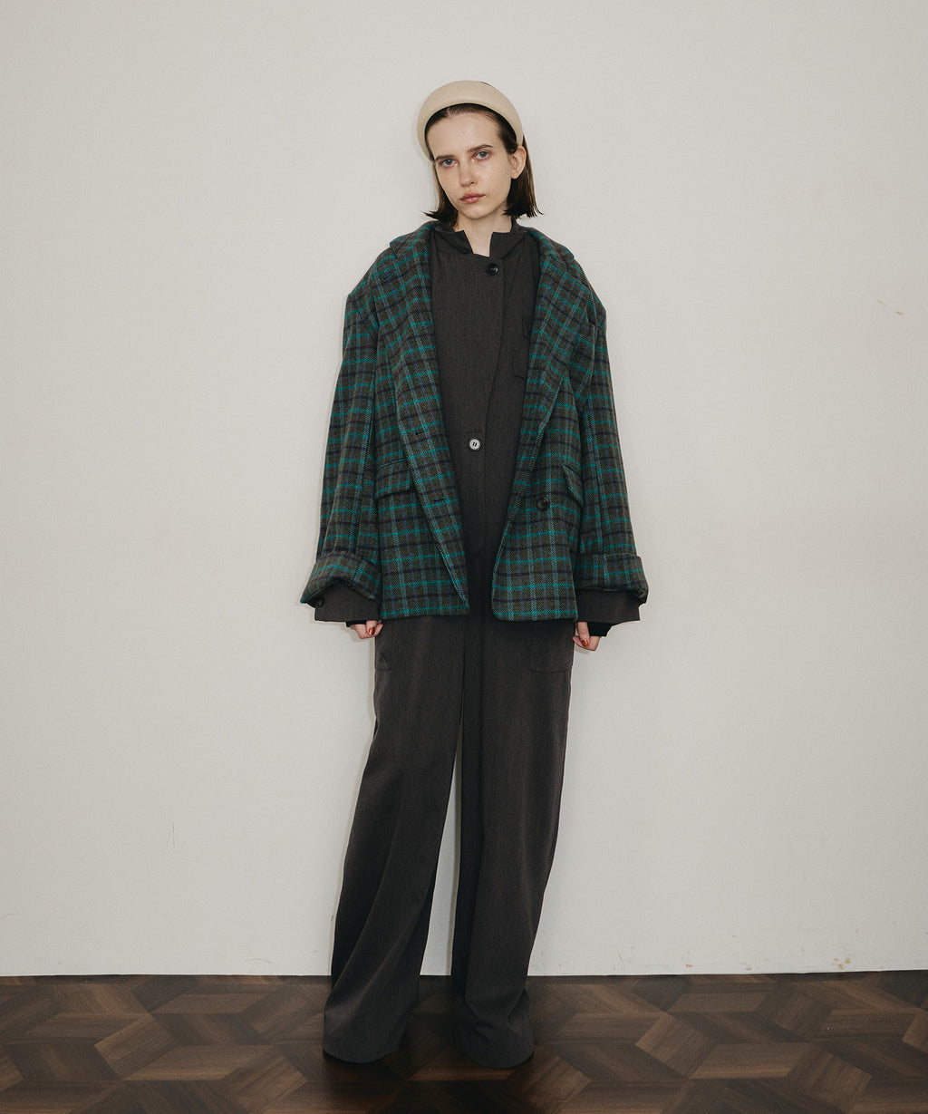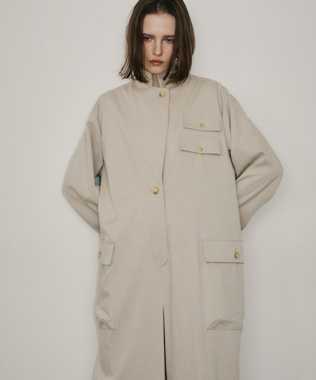 胸元のダブルフラップやラペルボタンなど、遊び心もプラス。