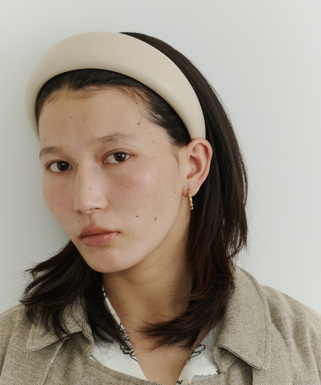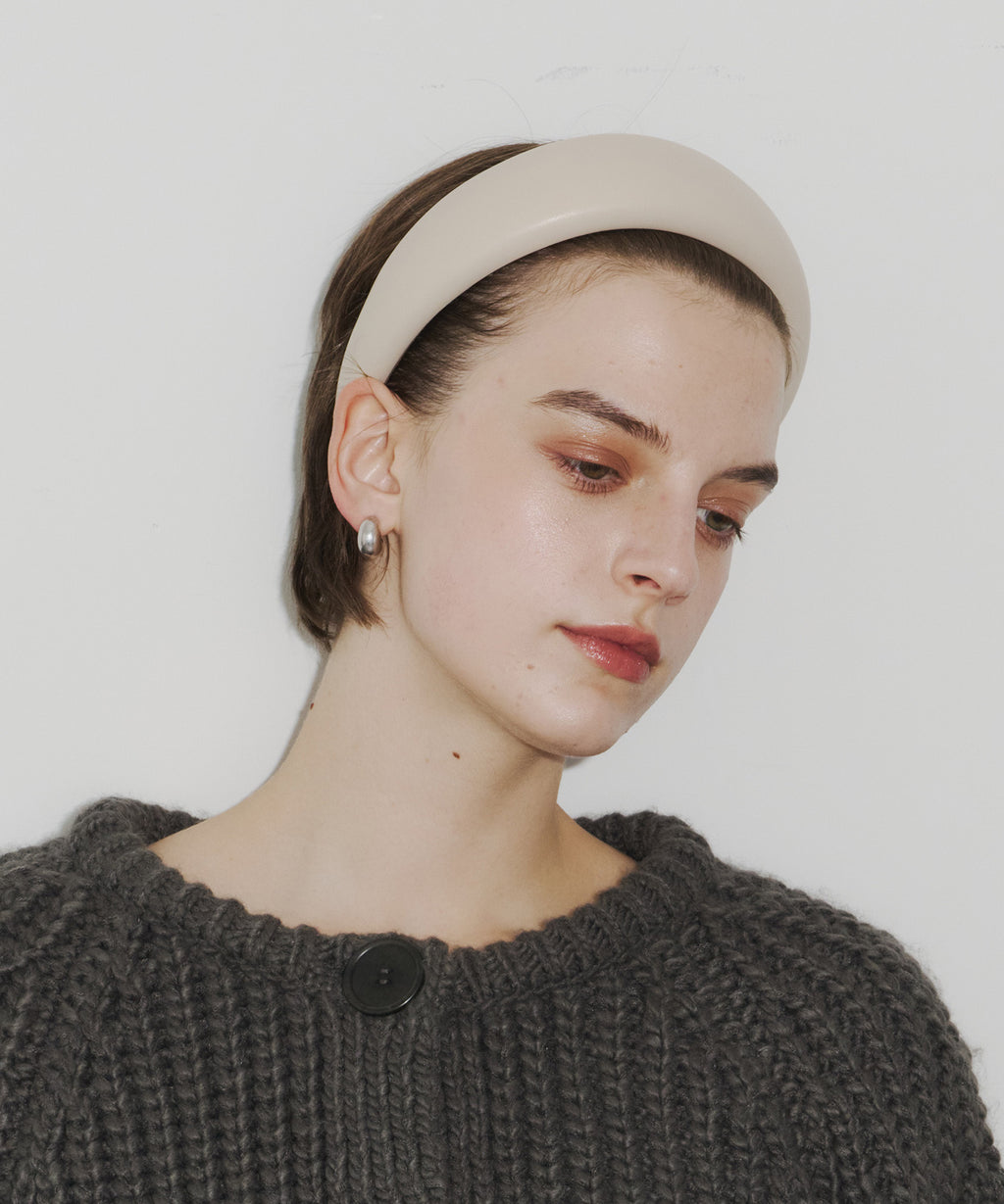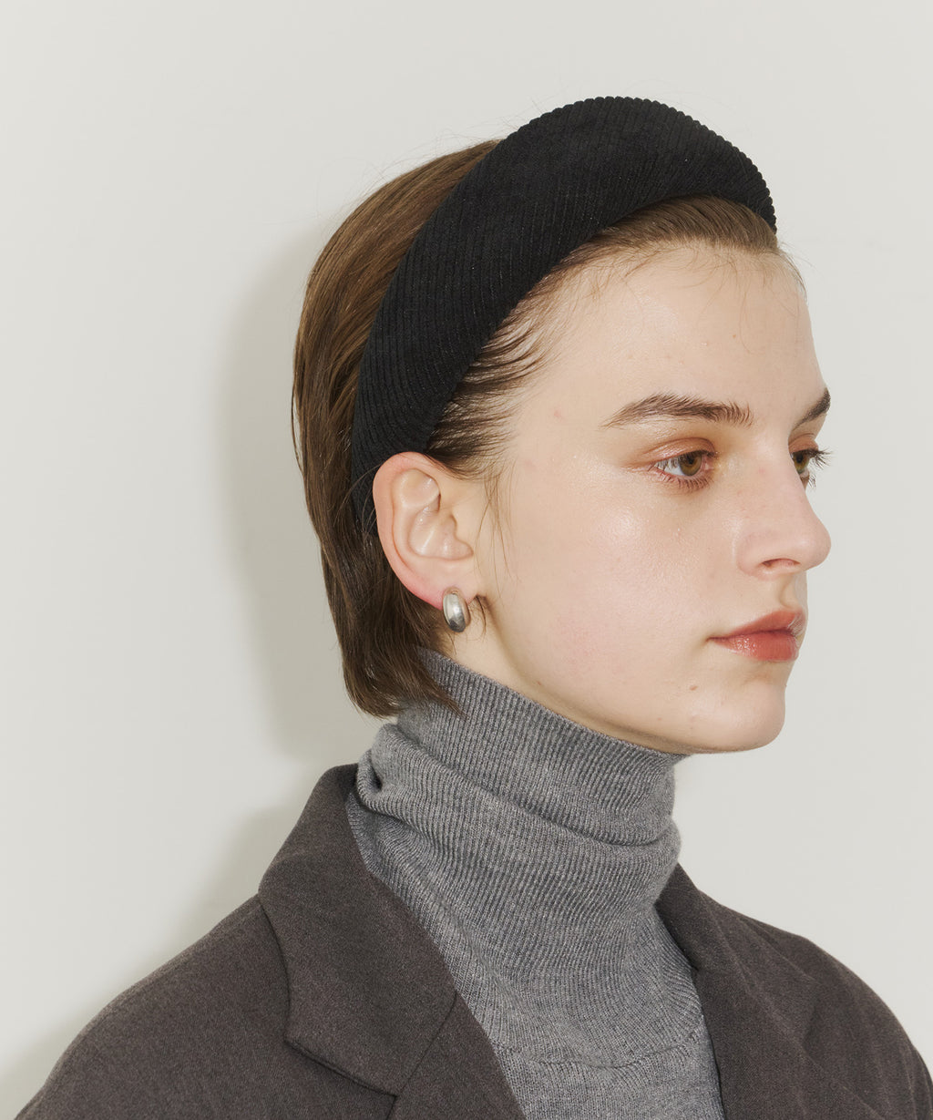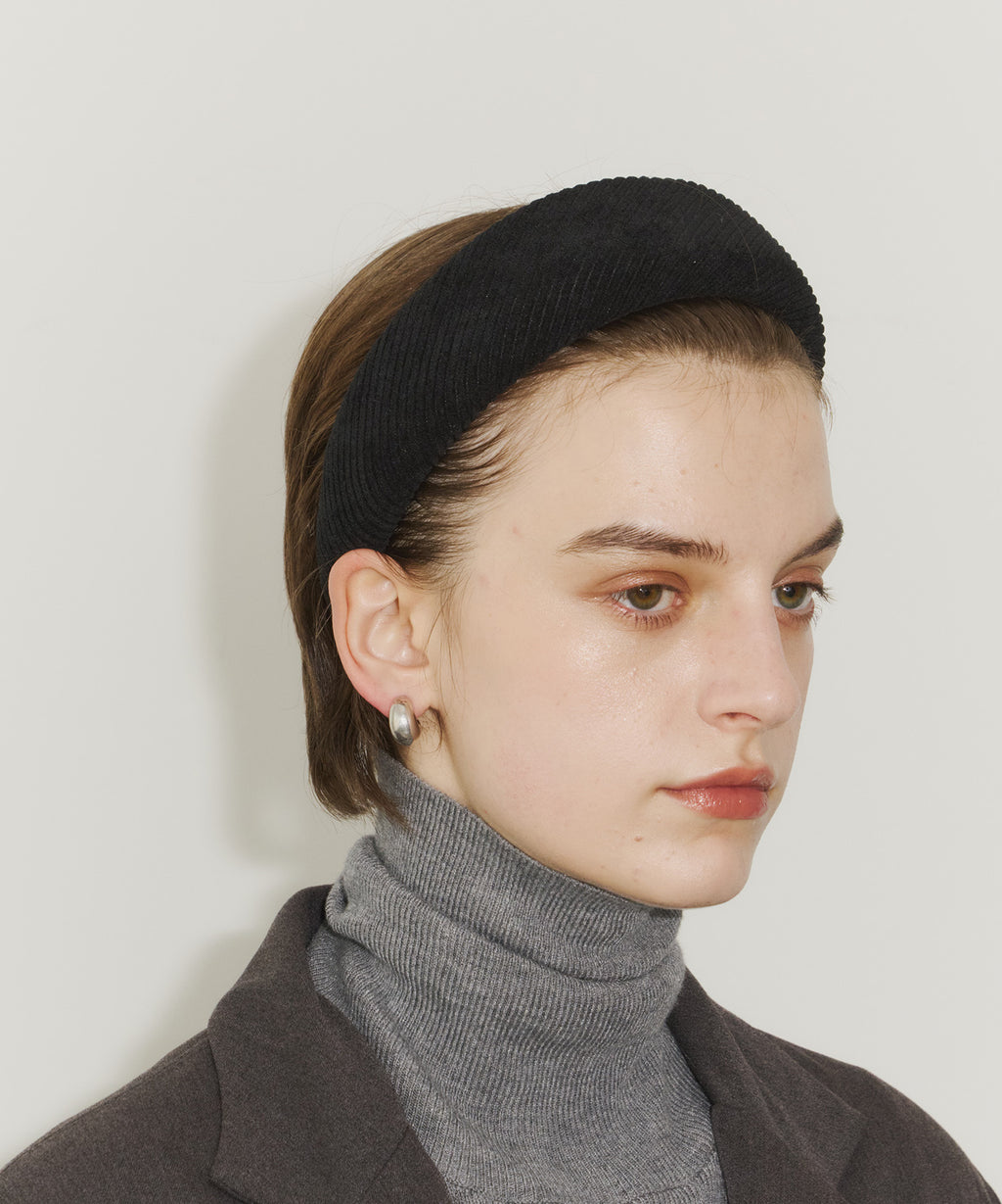 幅と厚みどちもボリューム感たっぷりの、甘くならないカチューシャです。