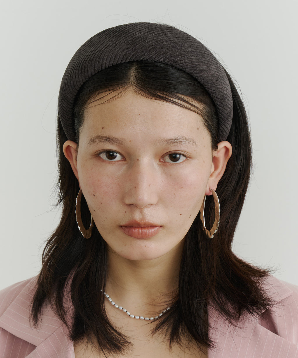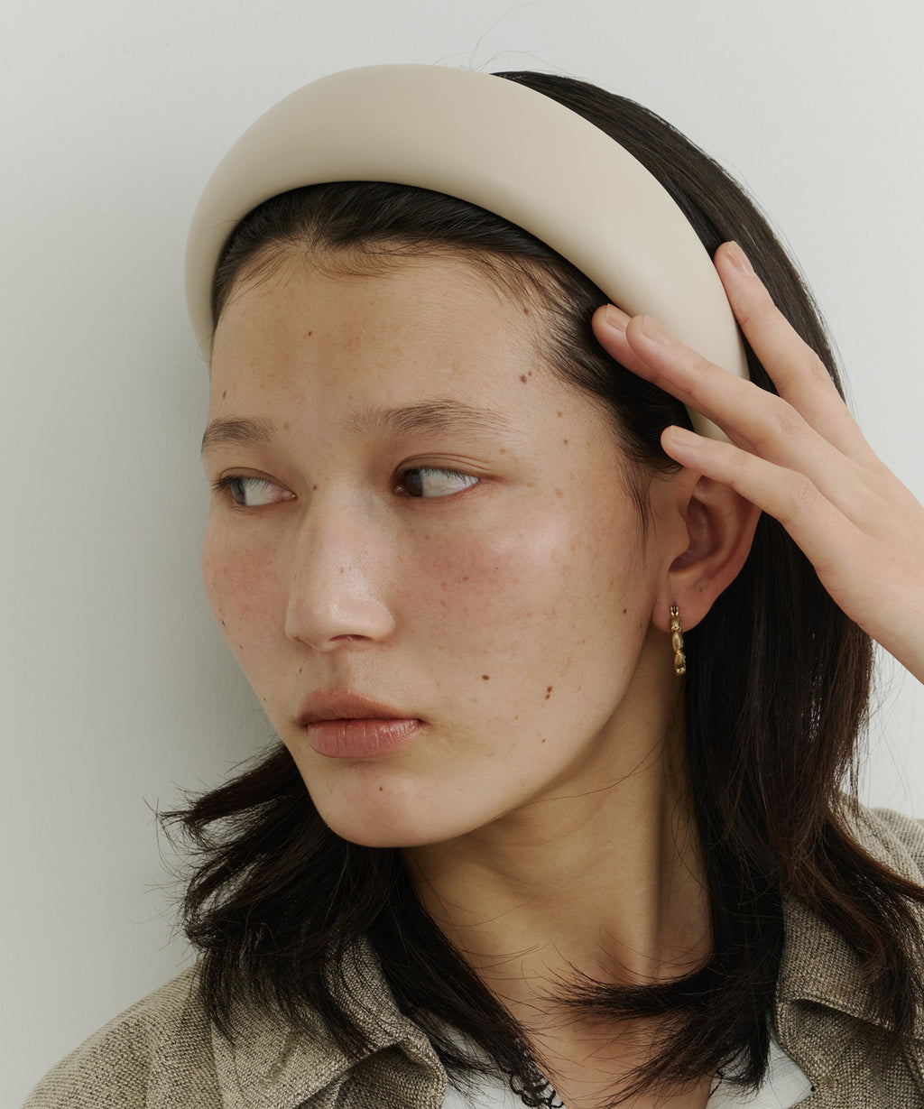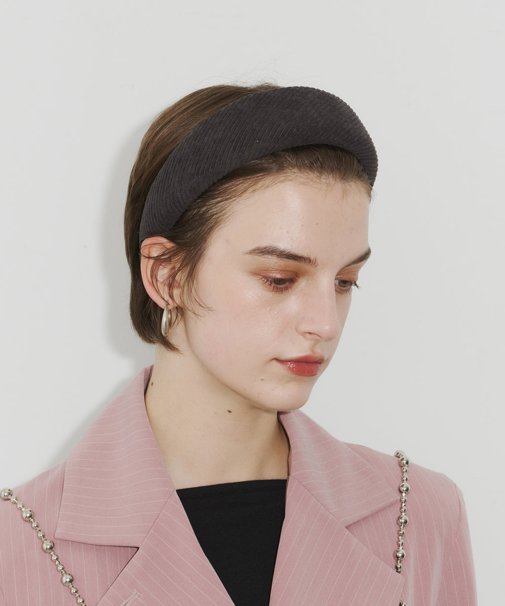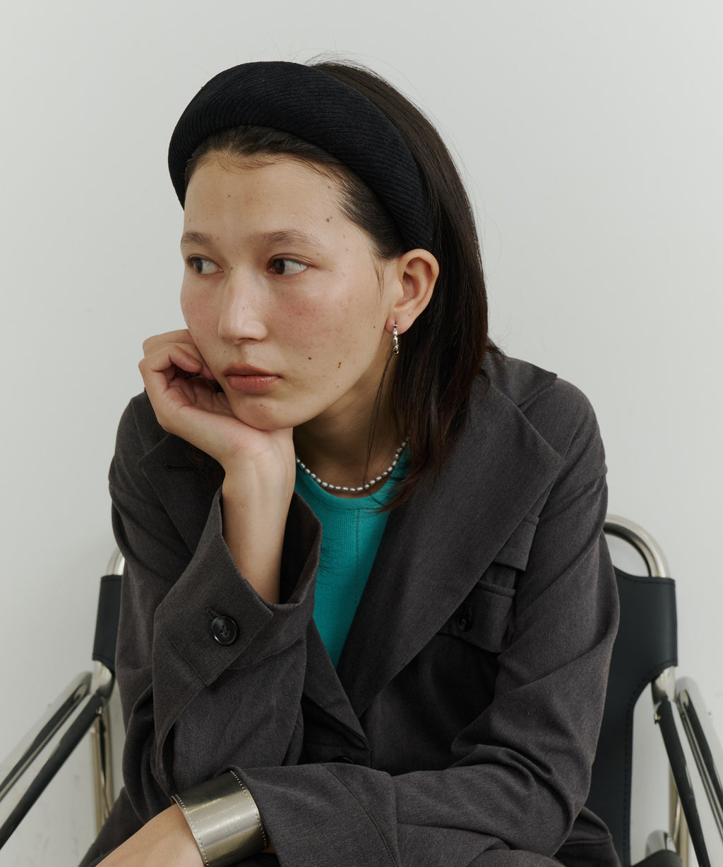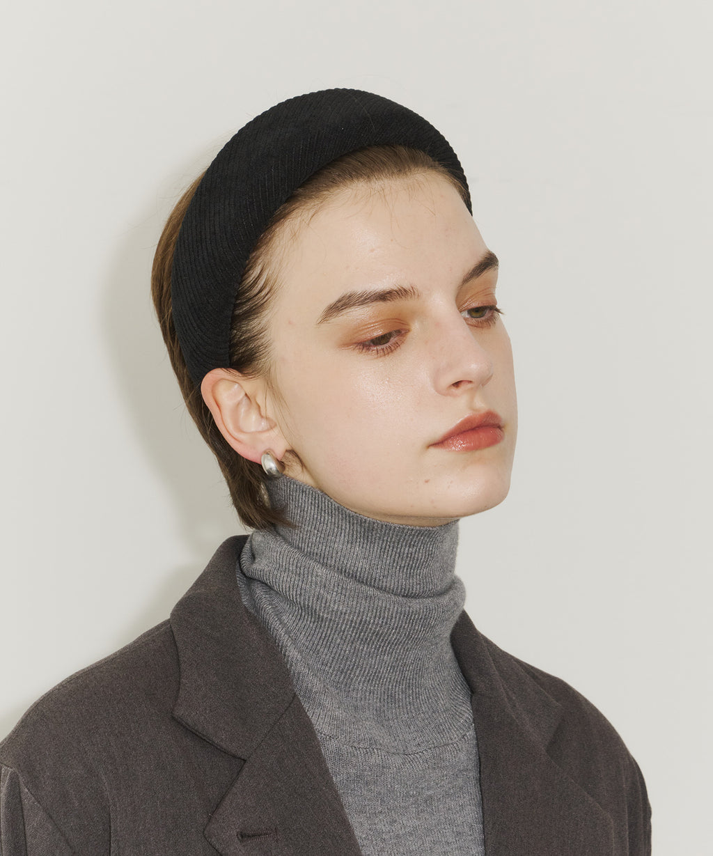幅と厚みどちもボリューム感たっぷりの、甘くならないカチューシャです。