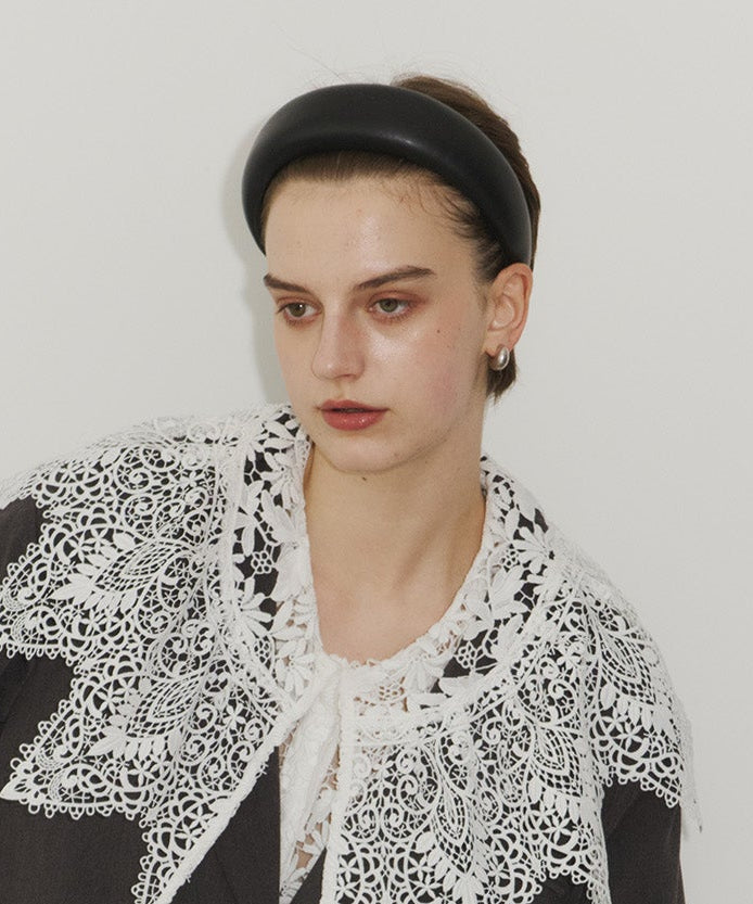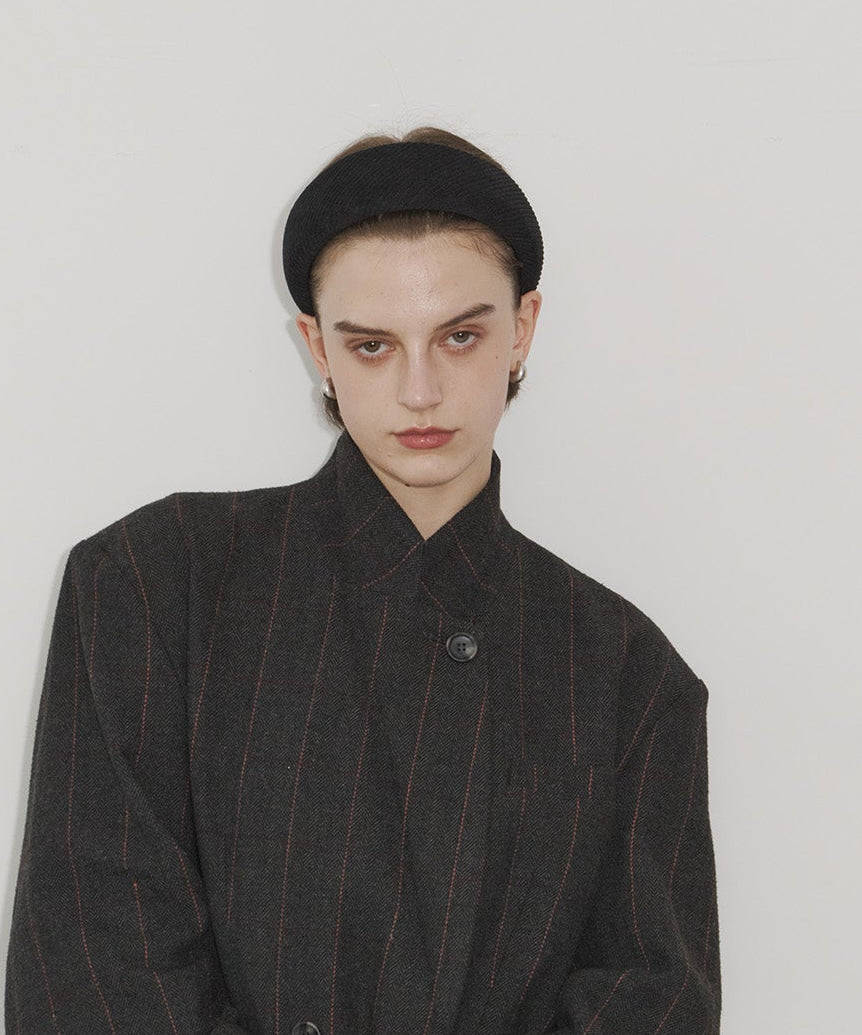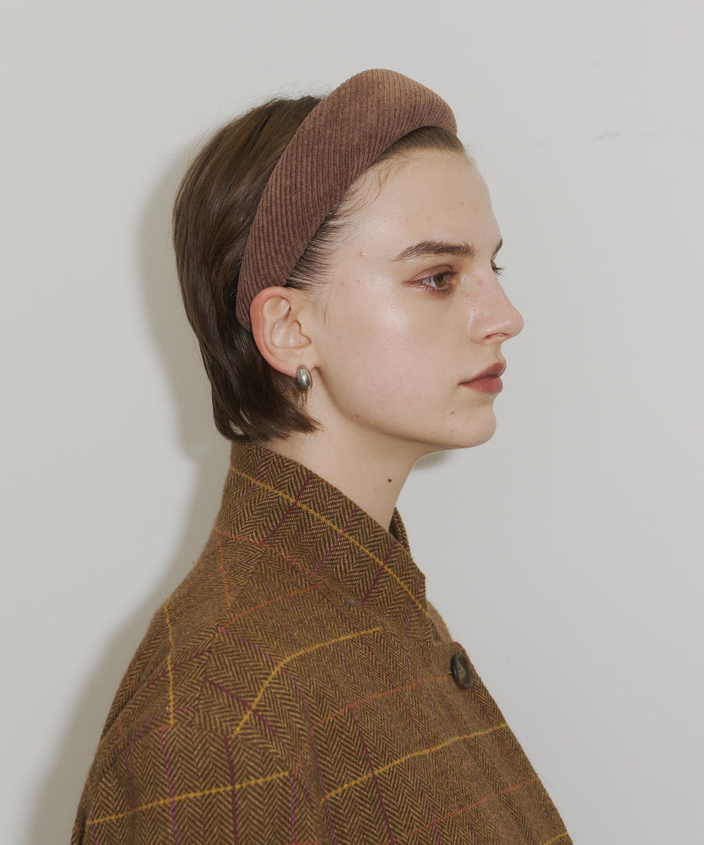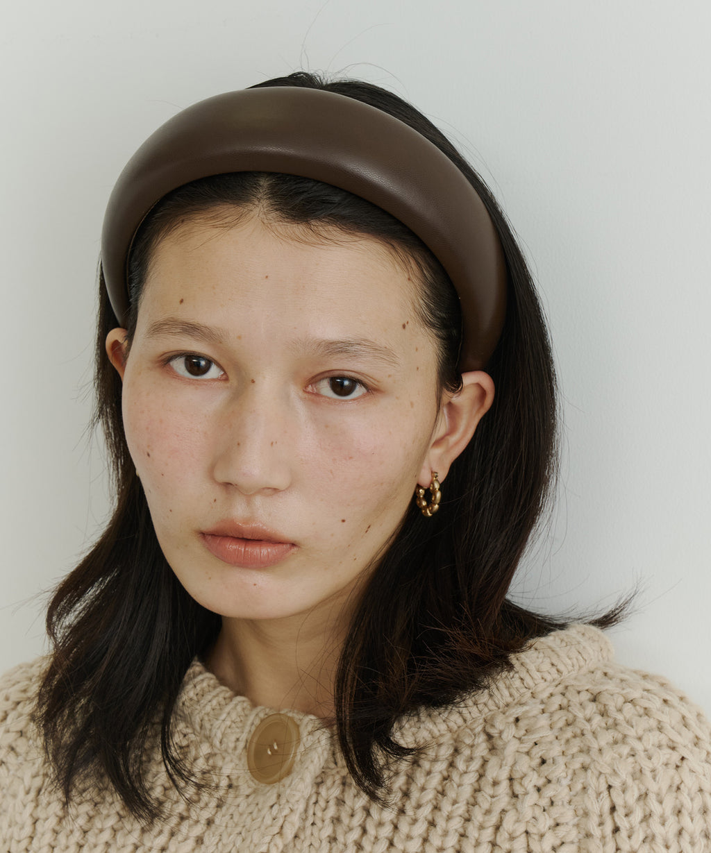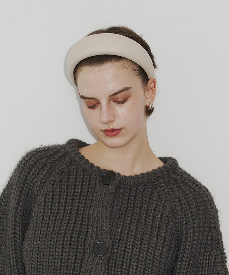 幅と厚みどちもボリューム感たっぷりの、甘くならないカチューシャです。